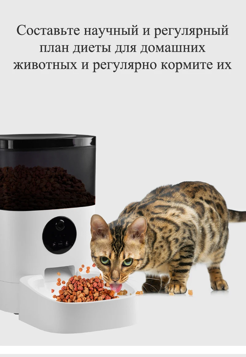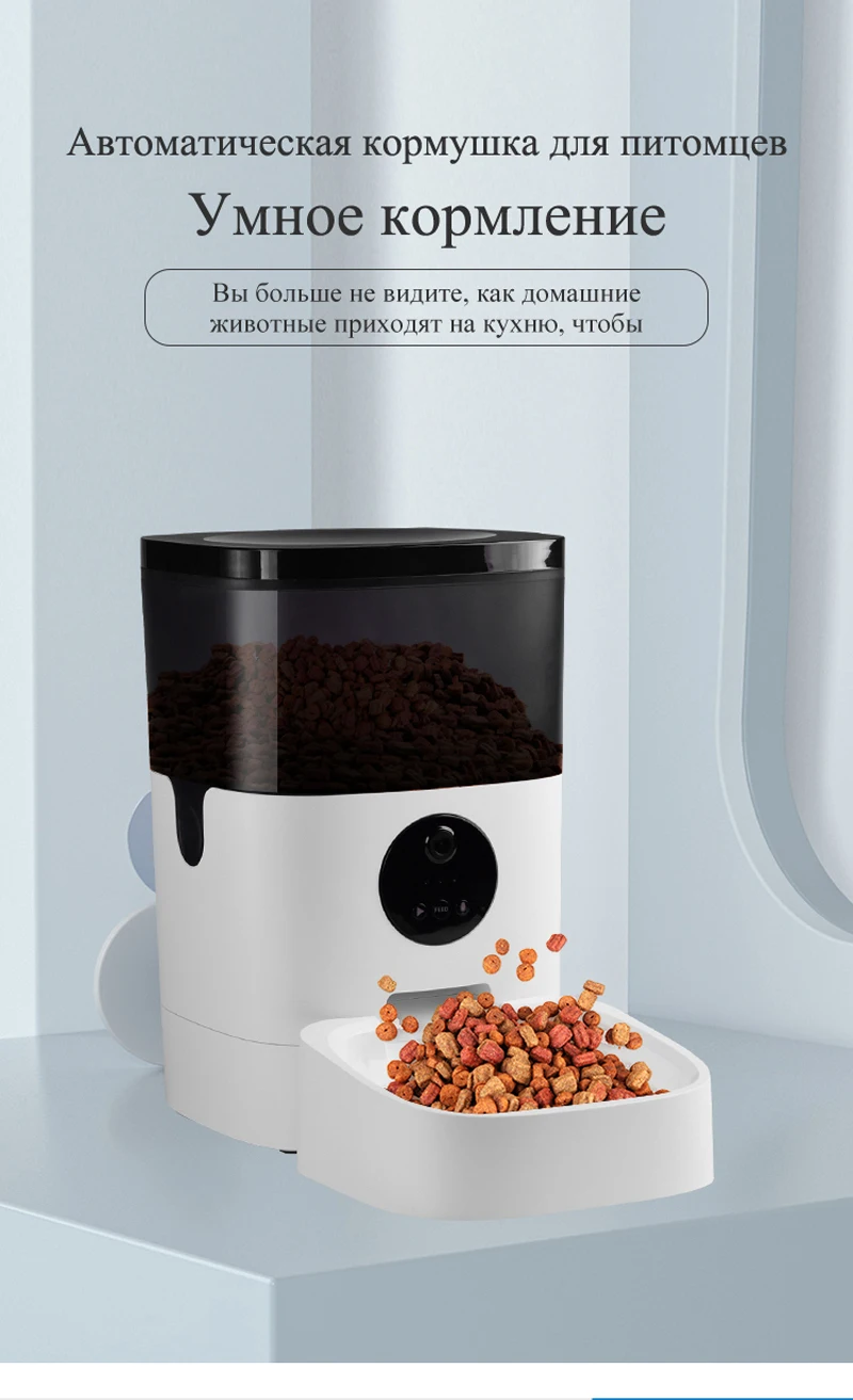 Легко программируемая автоматическая кормушка с таймером для своевременной выдачи корма, 1-8 приемов пищи в день и до 20 порций за один прием пищи, индивидуальная здоровая диета для ваших кошек и маленьких собак. Одна порция составляет 7 г ± 2 г. Для сухого корма с диаметр частиц 2-12 мм