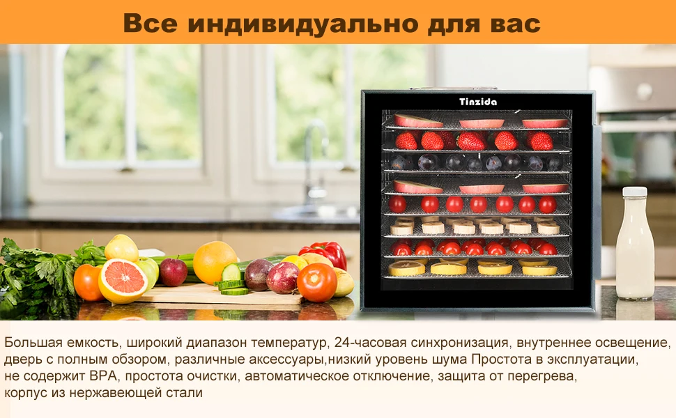 Cушилка для овощей и фруктов Tinzida настраивается под ваши потребности, что делает процесс приготовления здоровой пищи более удобным для вас