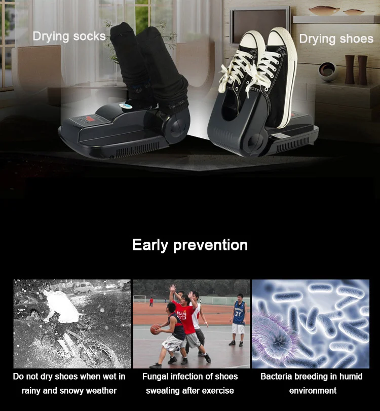 В этом продукте используются нагревательные компоненты при постоянной температуре. Он может Дезодорировать обувь, носки и перчатки, озонить и сушить при постоянной температуре без использования каких-либо химикатов. Это новый продукт с защитой окружающей среды, безопасностью, простотой в эксплуатации и временем от 1 до 99 минут. Необходимые сушилки для обуви для всей семьи в сезон дождей: