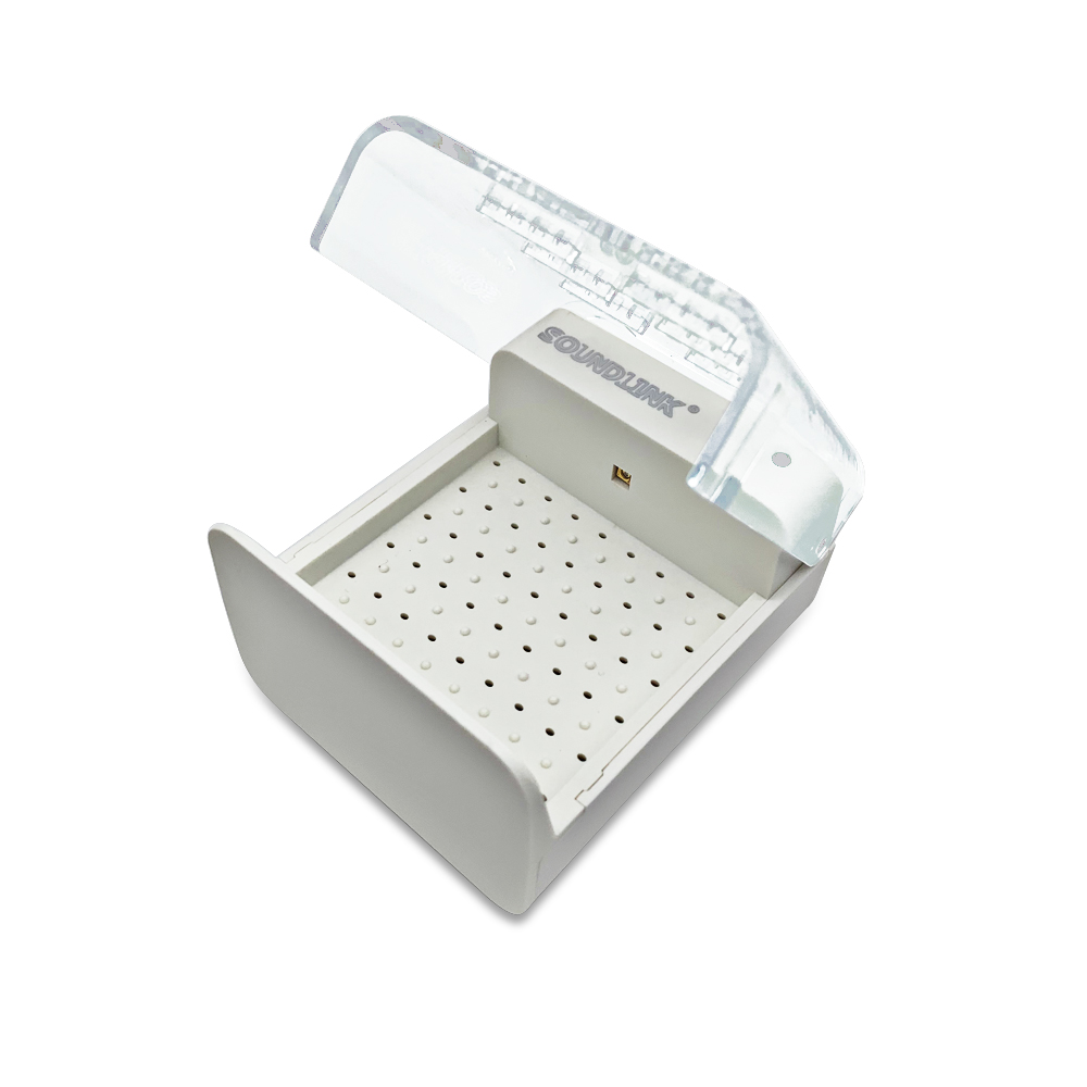 Электронный сушильный Футляр Soundlink специально разработан для сушки слуховых аппаратов и других сложных электронных продуктов размером с пинту и предотвращает повреждение высококачественной электроники под воздействием влаги.