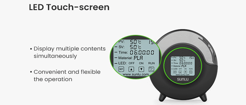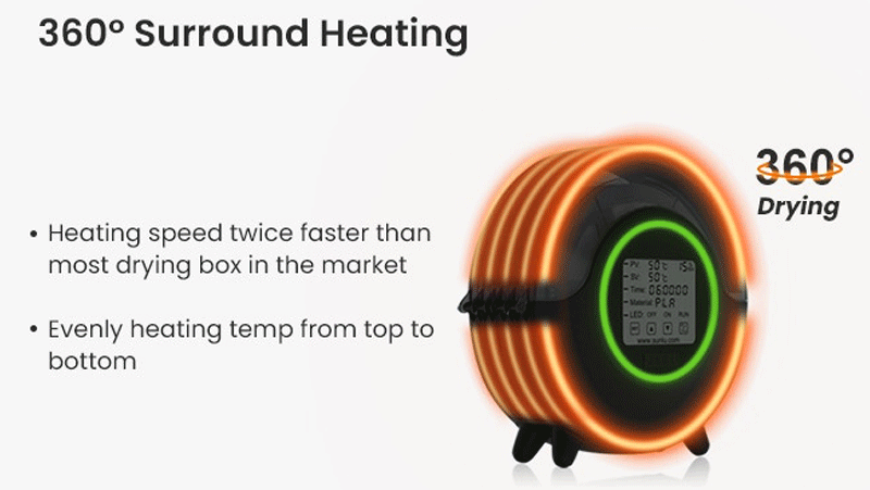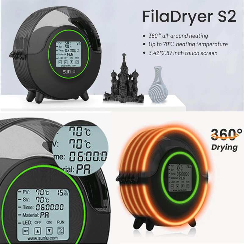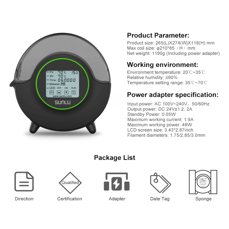Нить Можно печатать во время сушки Через это отверстие, и влага, полученная от сушки, может быть удалена одновременно. Для нити 1,75 мм/2,85 мм/3,0 мм.