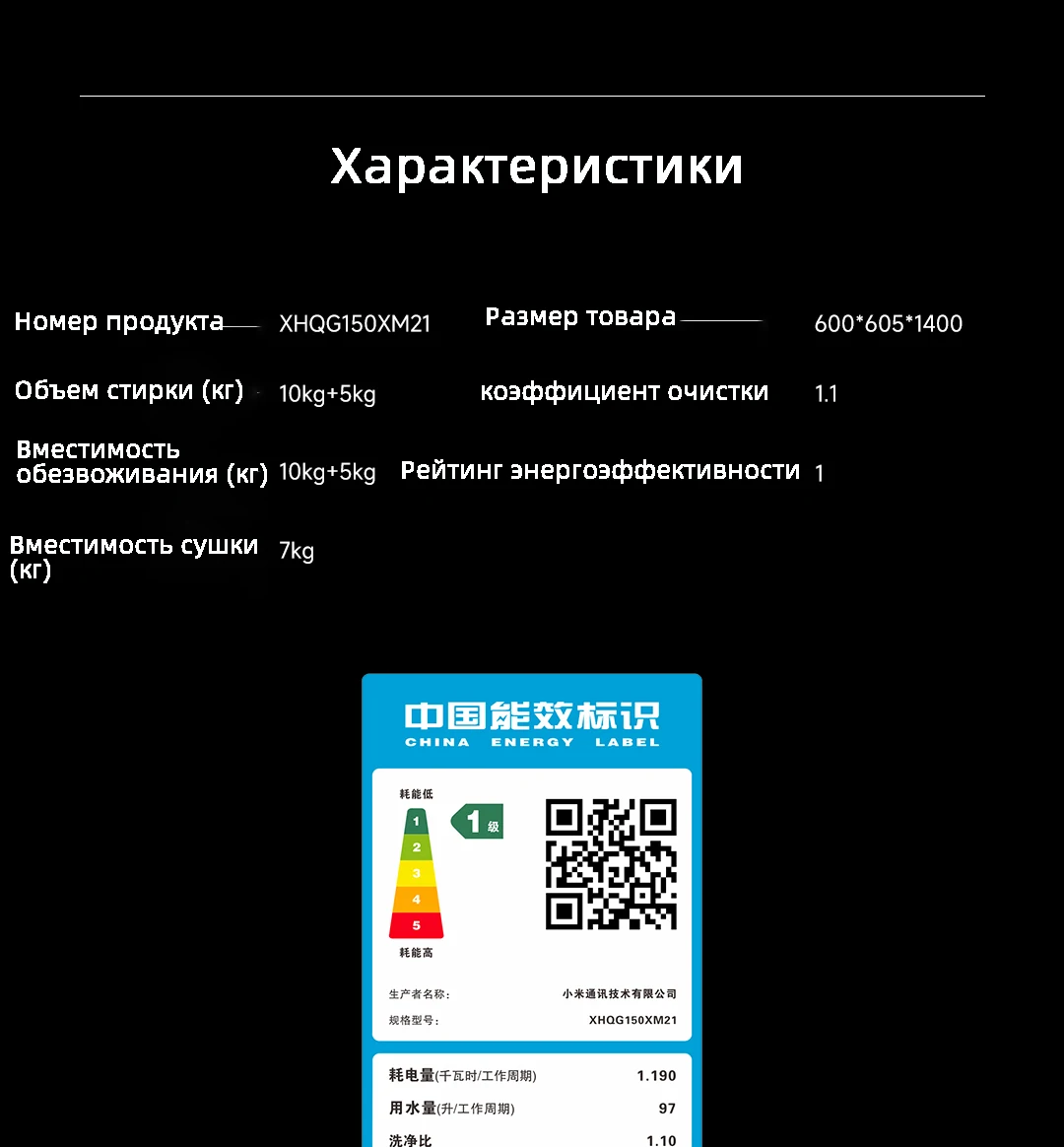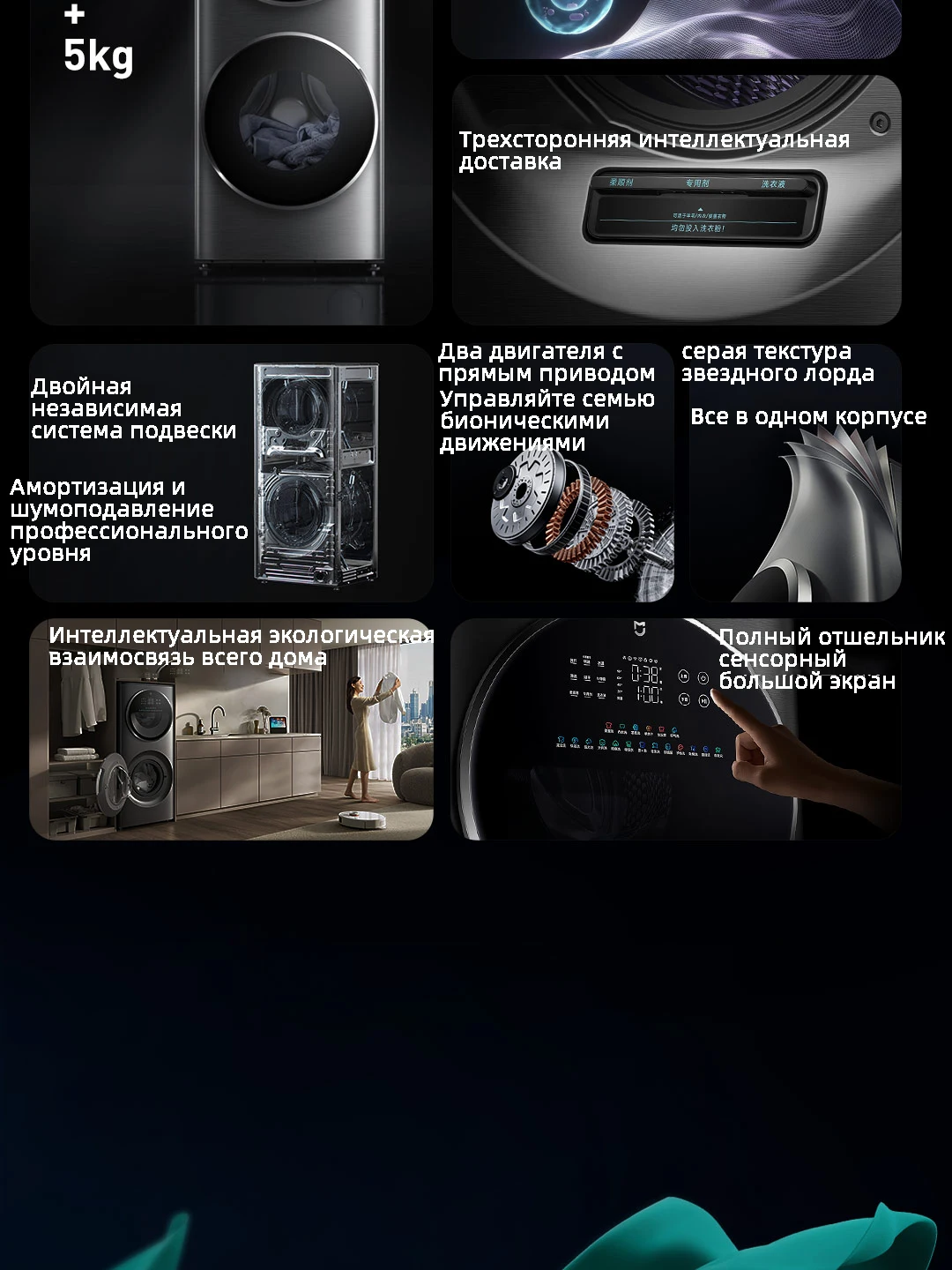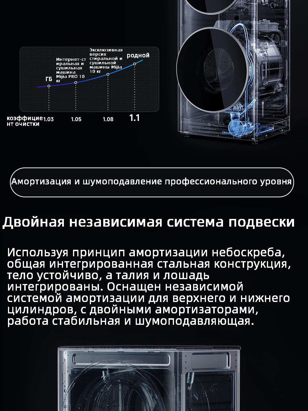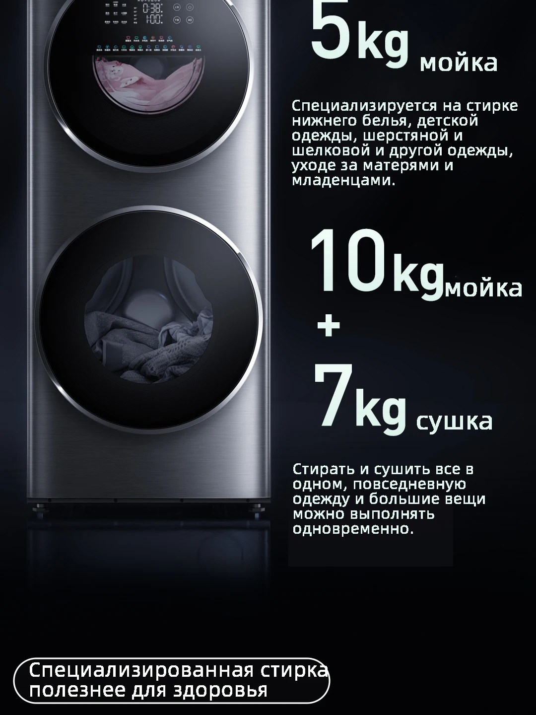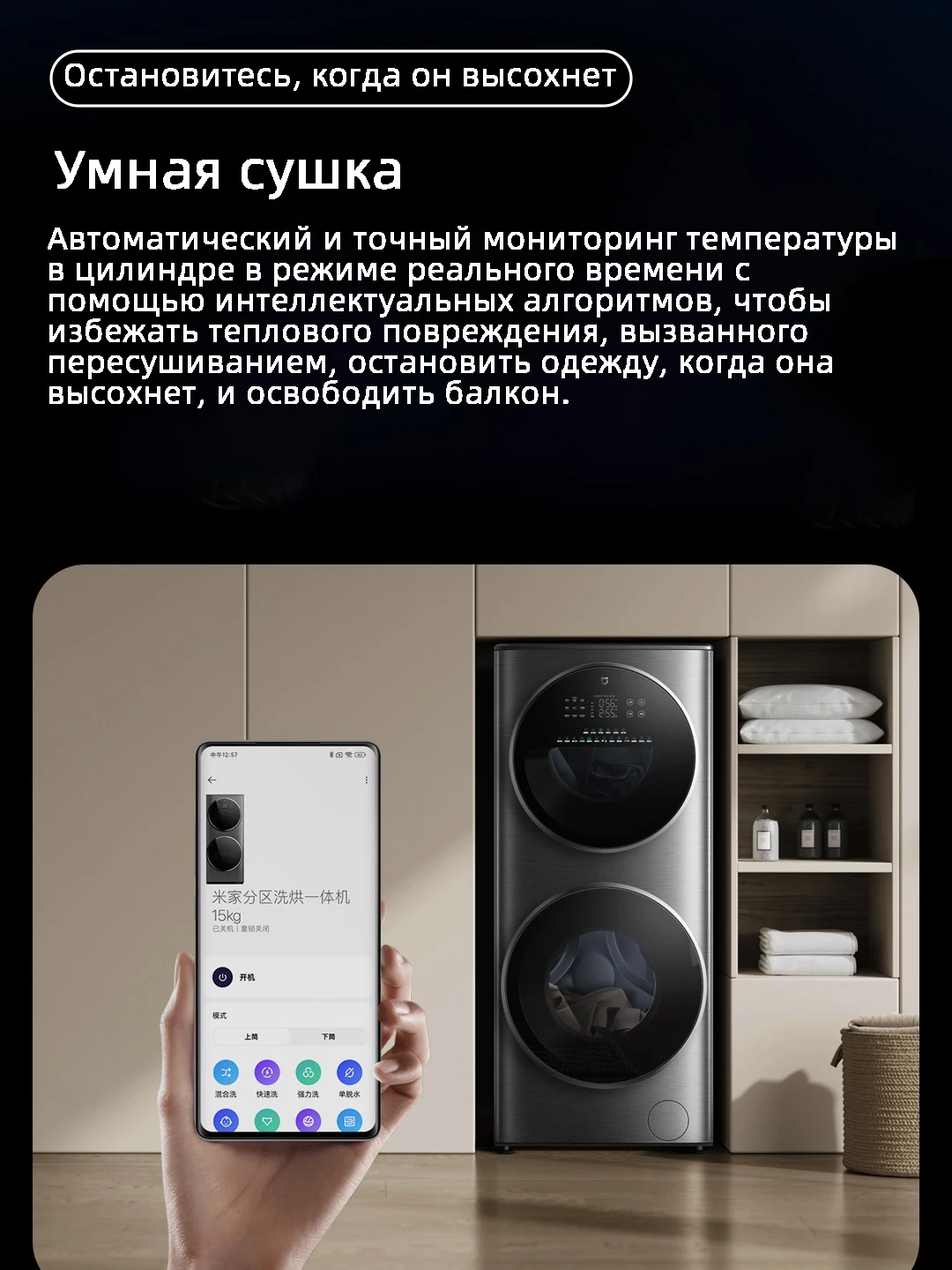 Сушильная машина Xiaomi Mijia для промывки перегородок, 15 кг, универсальные технические преимущества, двойной цилиндр, интегрированное формование