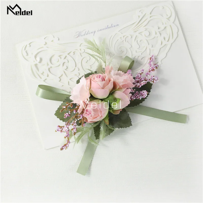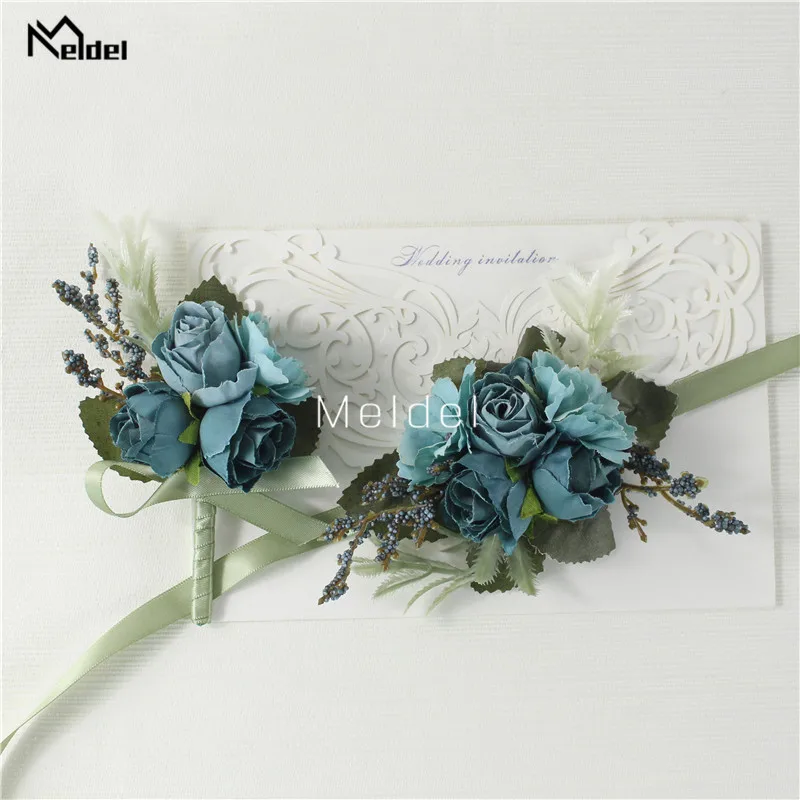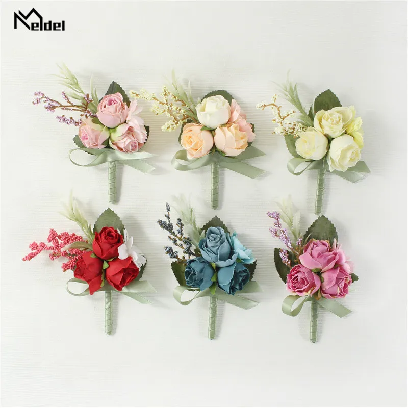 Свадебная бутоньерка Meldel для мужчин, булавки для жениха, цветок бутоньерка на запястье для подружки невесты, Шелковая Красная роза, бутоньерка