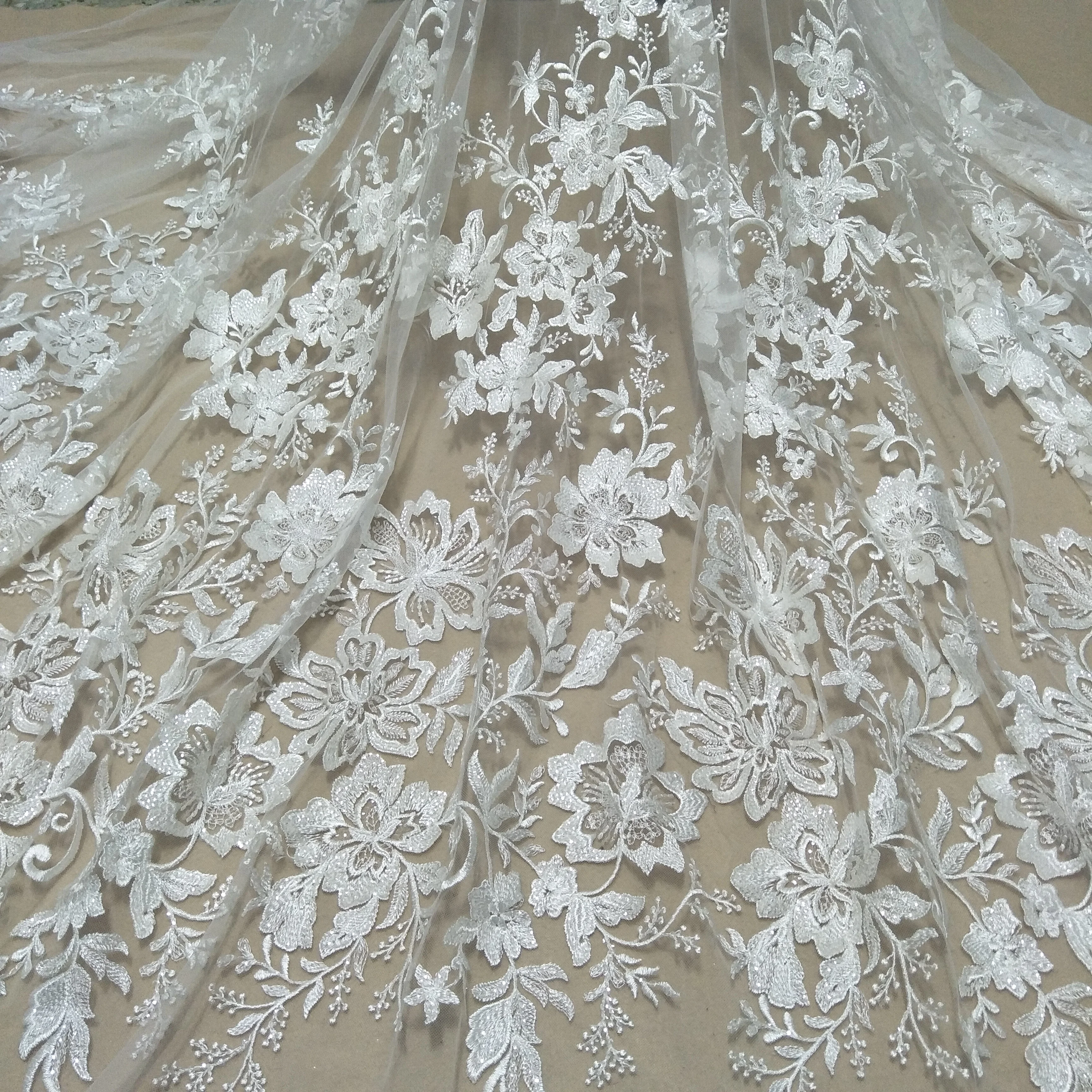 Свадебное кружевное платье, свадебное платье, кружевная свадебная ткань, кружево цвета слоновой кости, ширина 130 см, продажа по ярду