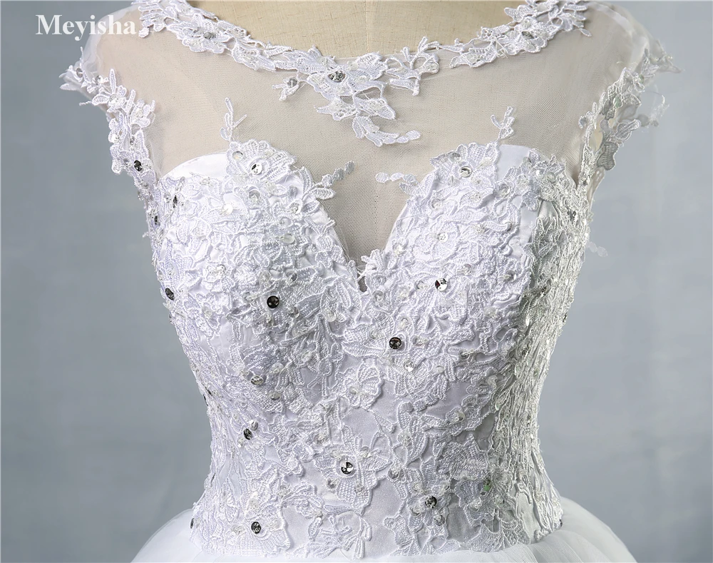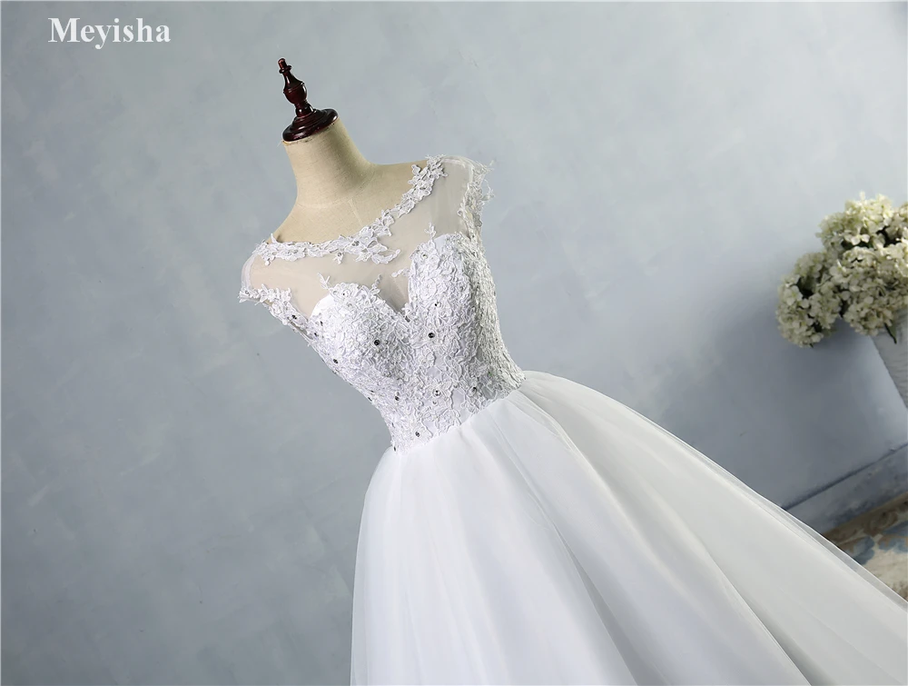 Свадебное платье с открытой спиной, коротким рукавом и шлейфом