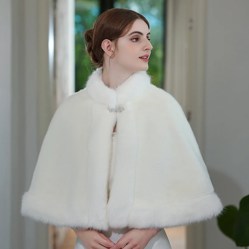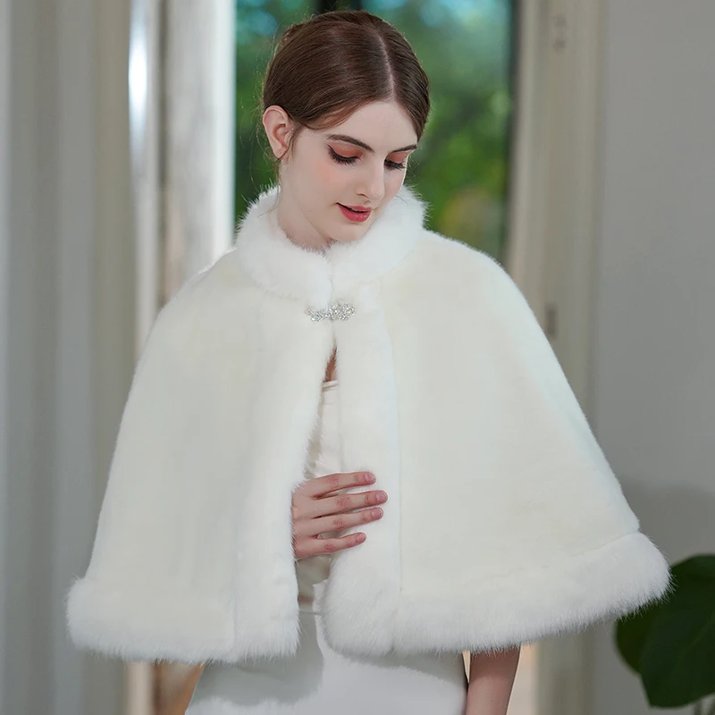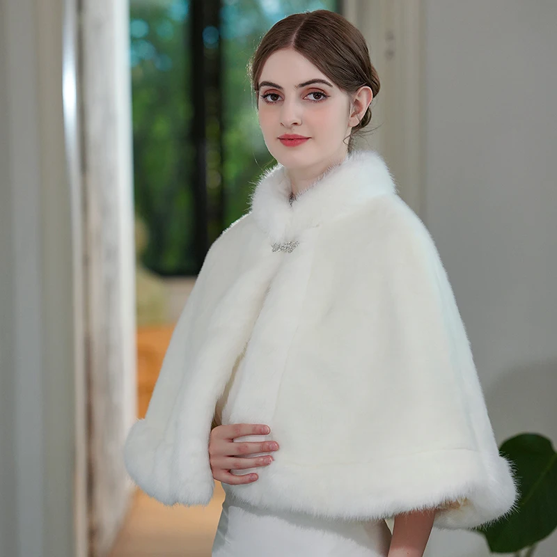 Свадебные аксессуары для платья невесты, Белая Шаль из искусственного меха для элегантности женщин
