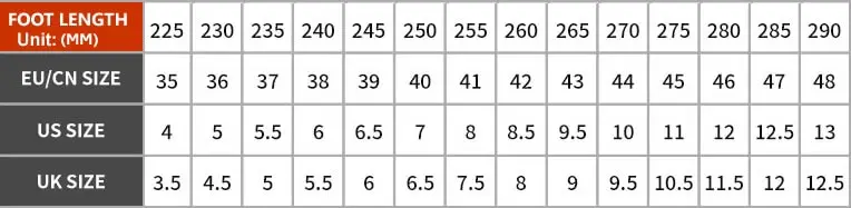 1. Цвета на мониторе вашего телефона или компьютера могут незначительно отличаться от реальных цветов продукта, это зависит от настроек вашего монитора. 2. Наша обувь китайского размера. Пожалуйста, Измерьте длину стопы, затем выберите размер в соответствии с длиной Вашей стопы. Если у вас немного толстая стопа, выберите на 1 размер больше. Если вы запутались, просто свяжитесь с нами. 3 、 Как выбрать правильный размер? 26 см = 260 мм = размер 42 ЕС/Китая