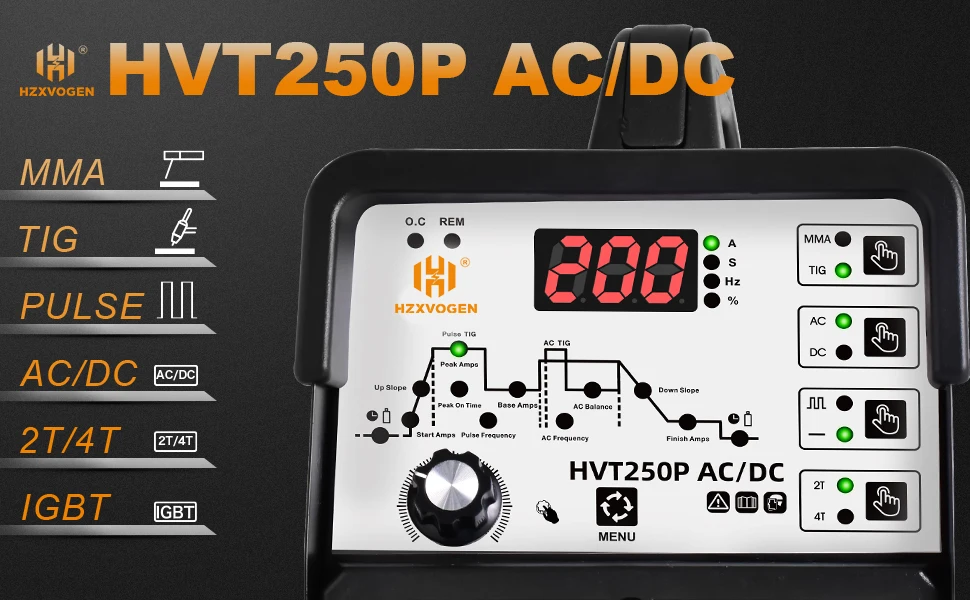 HZXVOGEN AC/DC Алюминиевый сварочный аппарат TIG HVT250P MMA ARC Stick Welder 200Amp Инструменты IGBT инвертор 2T 4T soldador с импульсной функцией для электрических работ