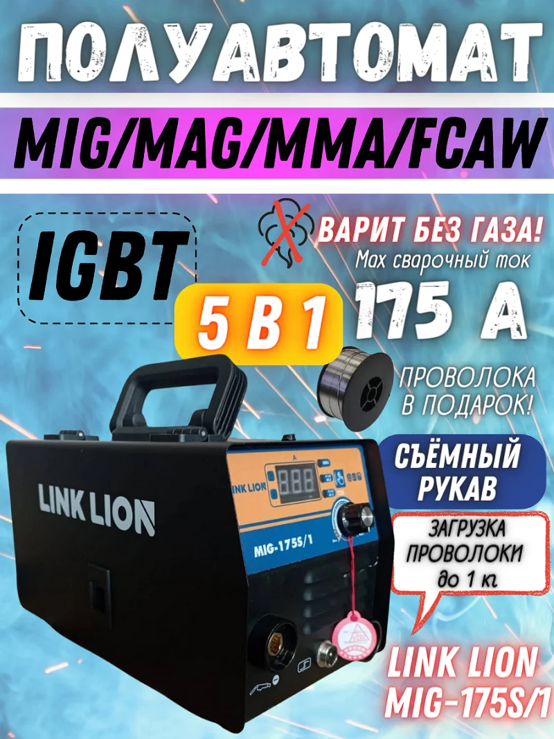Точный аналог  Edon Smart MIG-175S новый сварочный аппарат полуавтомат инверторного типа LINK LION MIG 175S/1, MIG/MAG/MMA/FCAW, ручная дуговая сварка, 3 в 1.