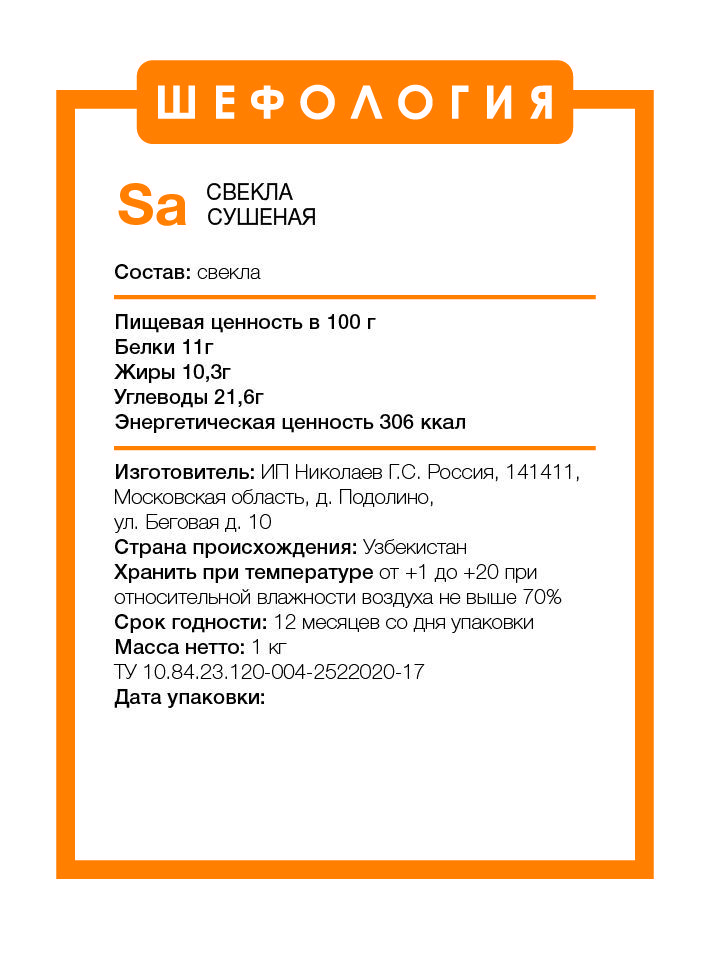 Свекла столовая сушеная резаная ПРЕМИУМ