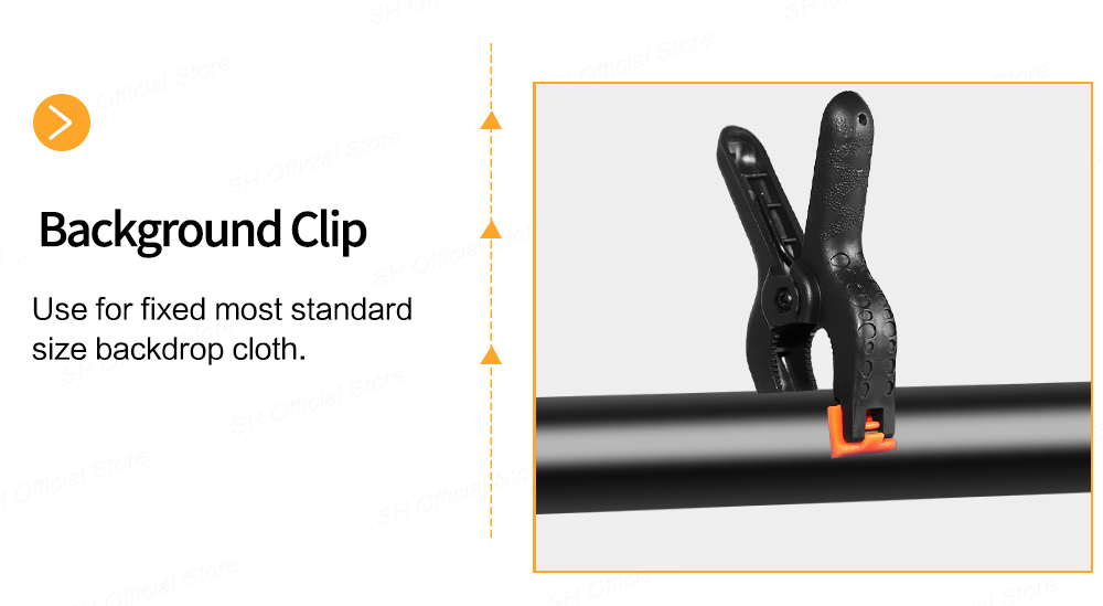 Прочные зажимы для большинства подставок стандартного размера и фоновой ткани.