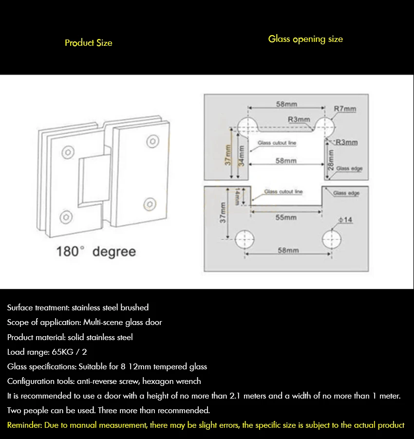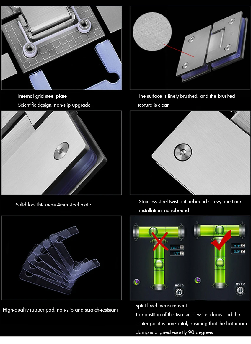 Сверхмощный 360-градусный стеклянный дверной шарнирный зажим, настенные стеклянные двери для душа, шарнир для стекла 8-12 мм, Матовая нержавеющая сталь