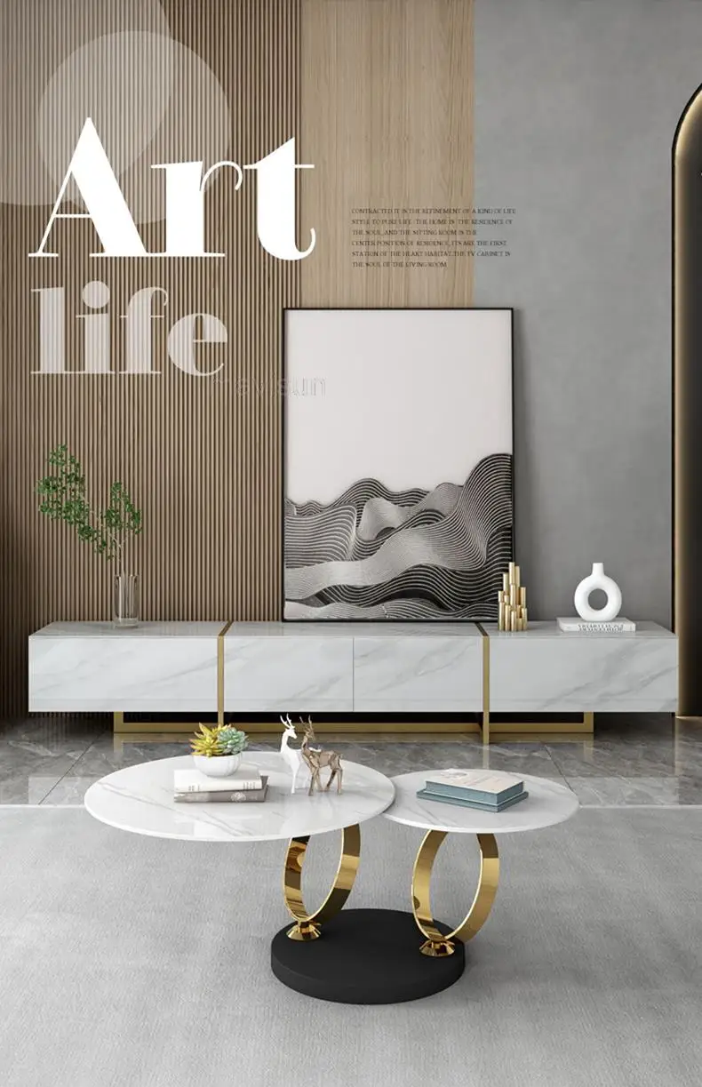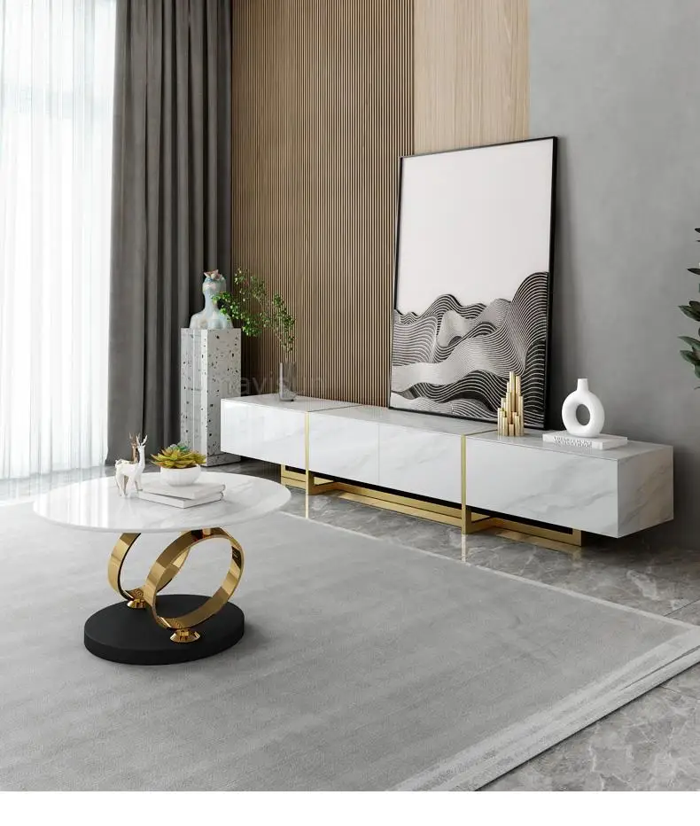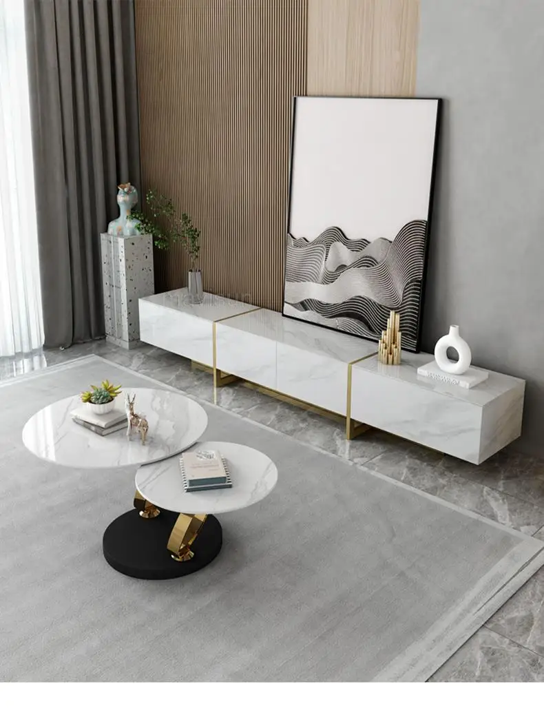 Светильник роскошный роковый креативный вращающийся чайный столик, современные минималистичные журнальные столики с рамкой из нержавеющей стали и ТВ-тумбой
