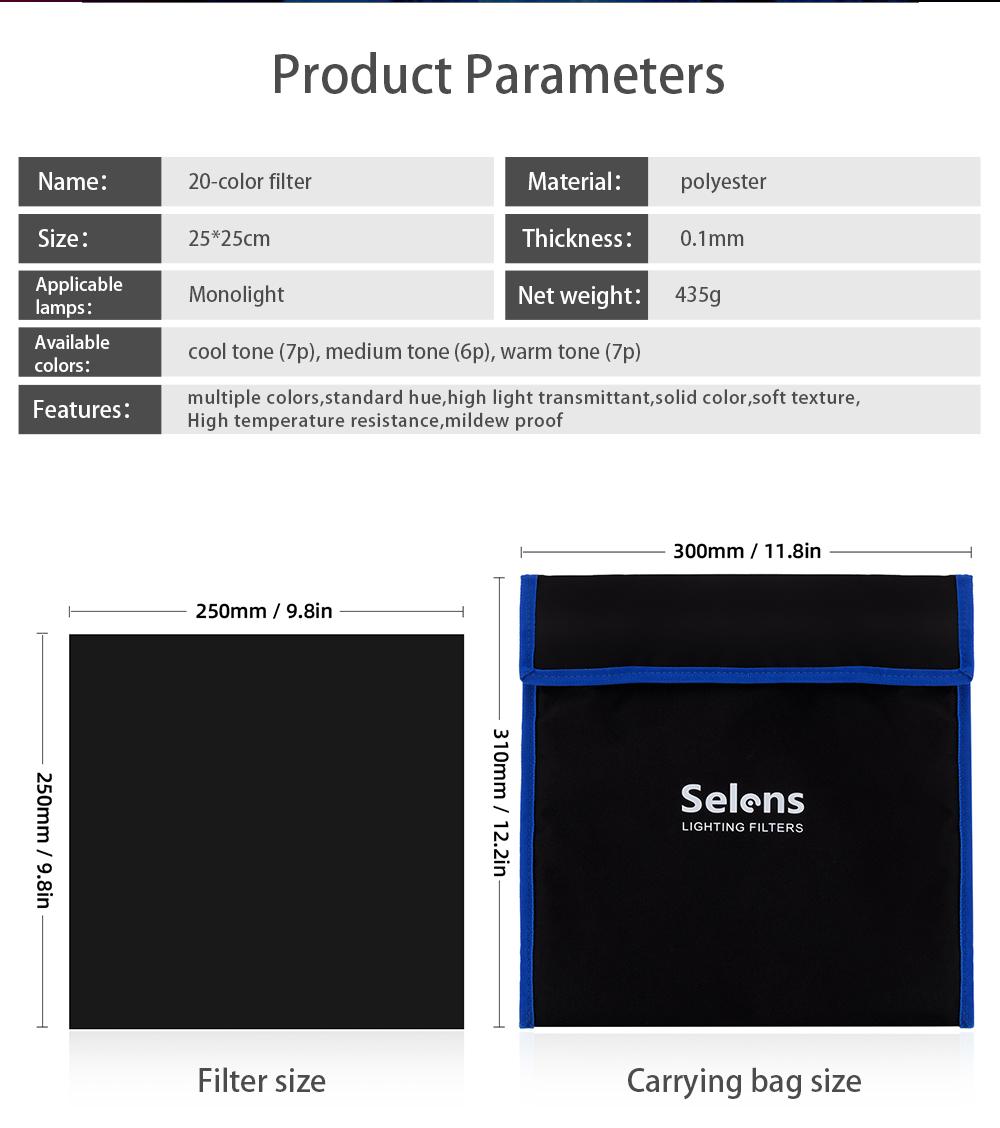 20 шт. Прозрачных цветных листов Размером 25x25 см-20 разных цветов можно комбинировать для создания различных эффектов, удовлетворить все, что вам нужно. Цветные фильтры можно использовать по-разному, чтобы обеспечить вам наилучший фотографический эффект и вдохновить ваше фотографическое творчество. Высокое качество материала передачи-полиэфирная пленка, гладкая, плоская, стабильная цветовая температура и низкие потери. Удовлетворите ваши различные требования-цветной гель можно разрезать на кусочки и использовать в кино, видео, фото, на сцене, в театре, на вечеринках, в диджейском освещении и т. Д. Советы по использованию Selens-Осветительный фильтр может расплавиться после поглощения слишком большого количества энергии, поэтому, пожалуйста, охладите источник света через 30 минут использования гелевого фильтра. Не кладите световые гелевые фильтры непосредственно на лицевую сторону осветительных приборов.