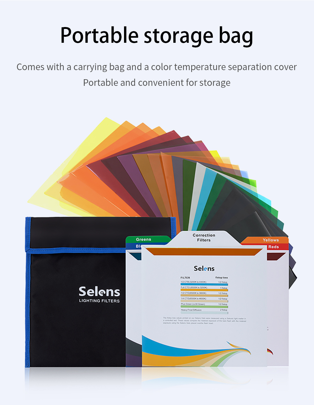 Включите сумку для переноски и крышку с разделением цветовой температуры.