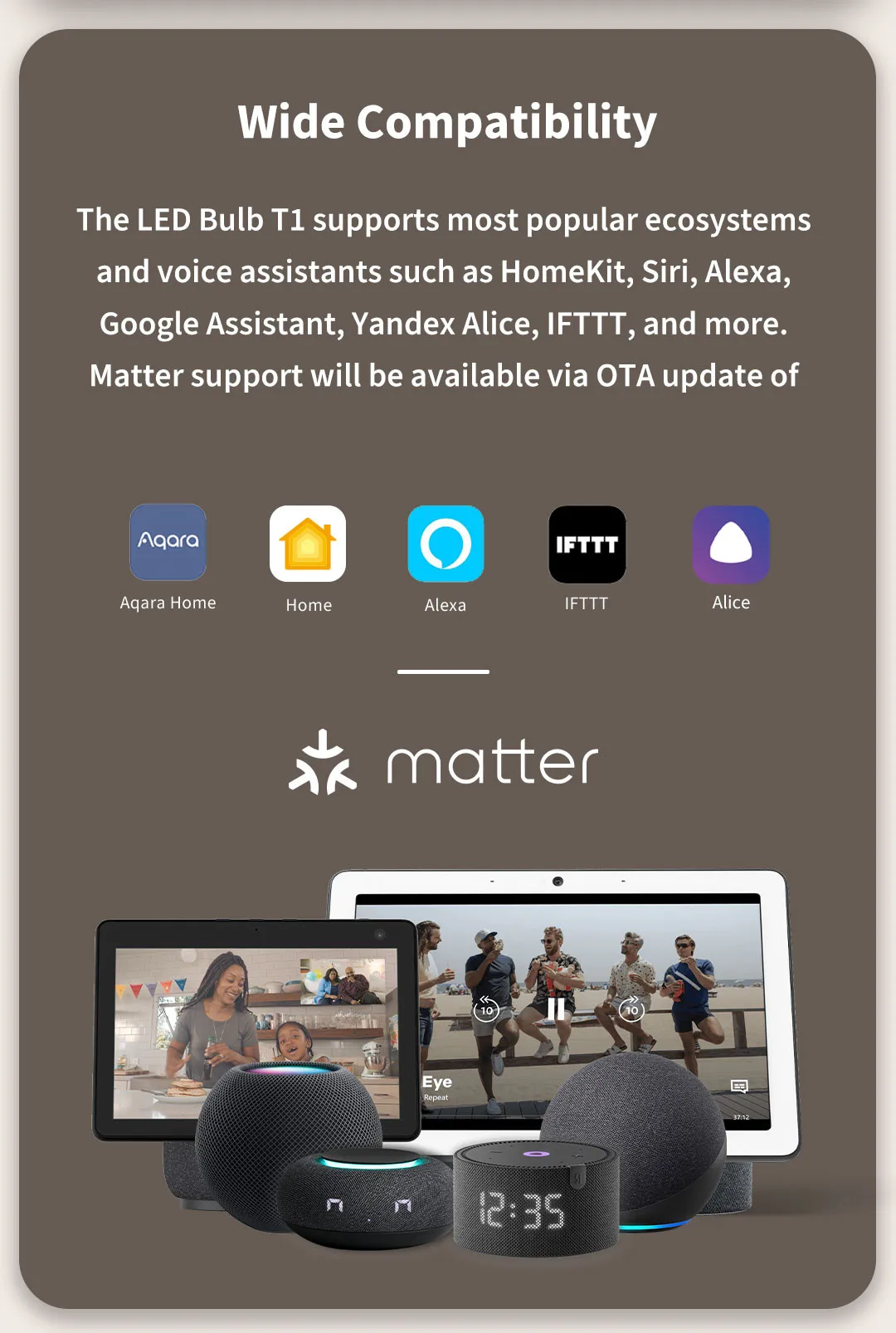Помимо Aqara Home, СВЕТОДИОДНЫЕ Интеллектуальные лампочки Aqara совместимы и могут управляться с помощью Apple HomeKit, Google Home и Alexa.