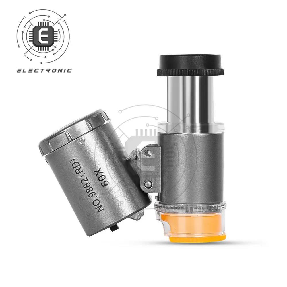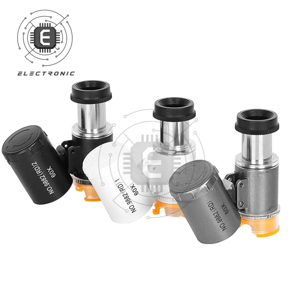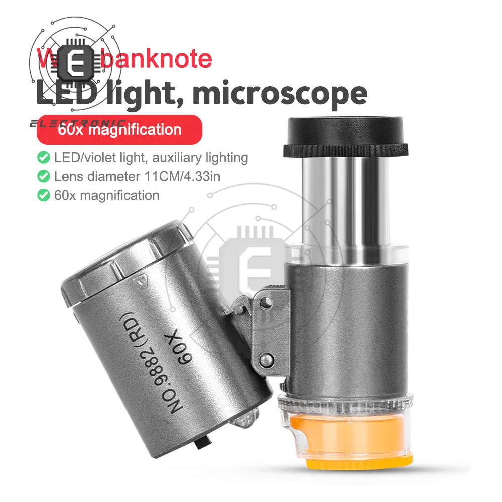 60 раз светодиодный микроскоп лампа портативный карман с лампой увеличительное стекло лупы