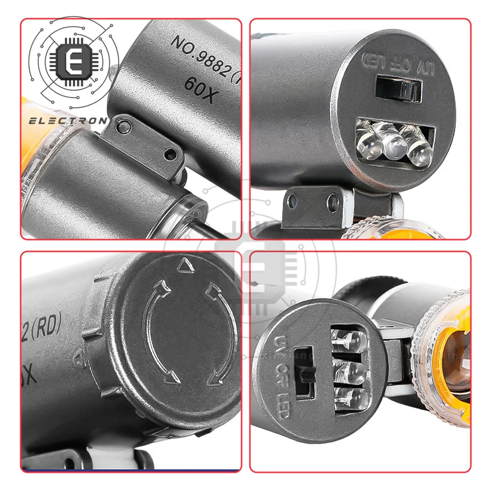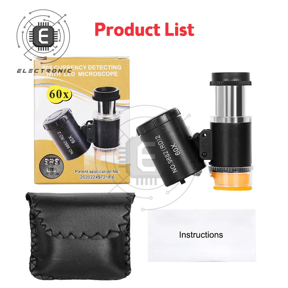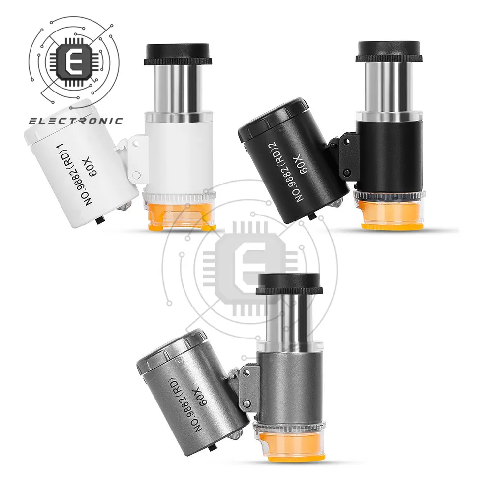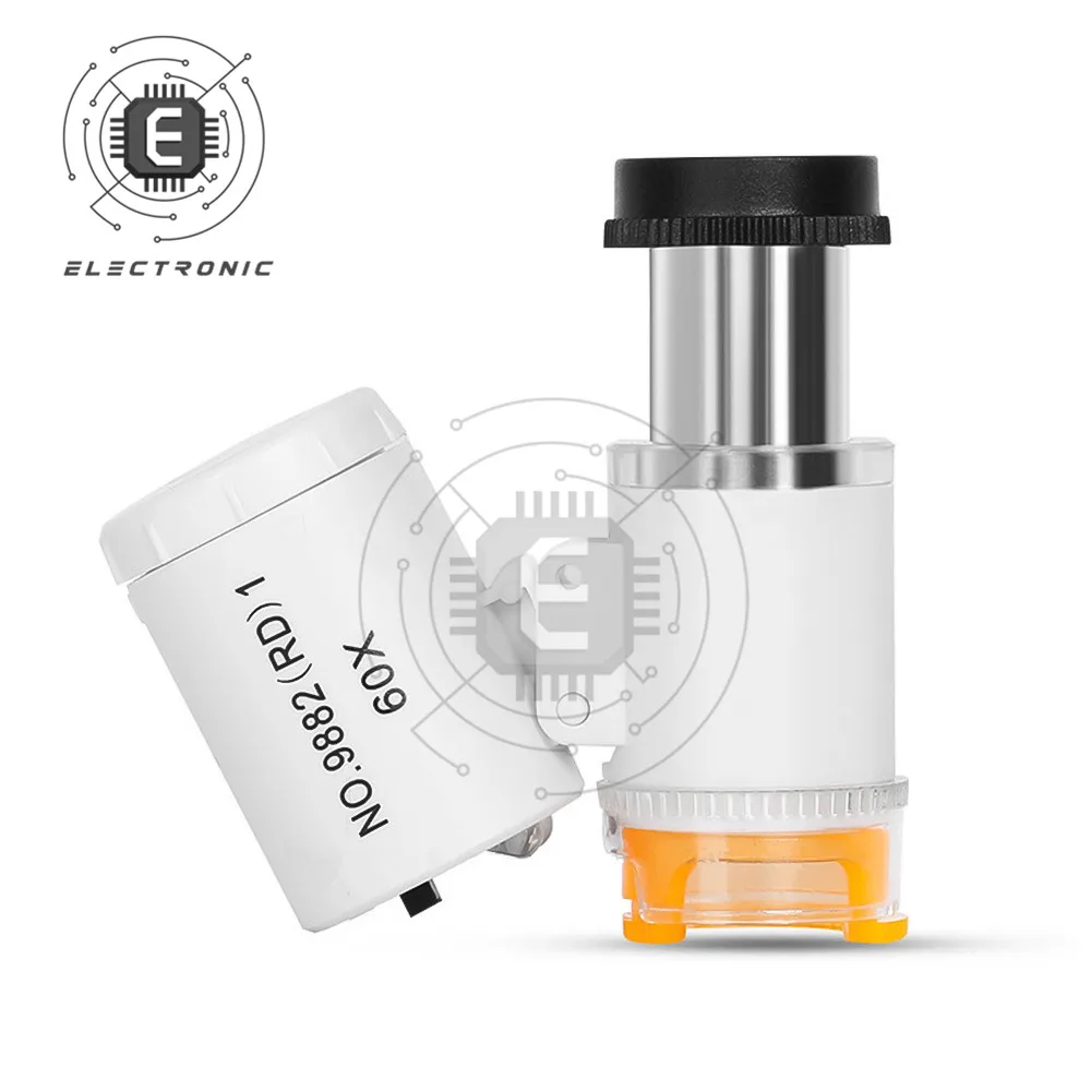 60 раз светодиодный микроскоп лампа портативный карман с лампой увеличительное стекло лупы