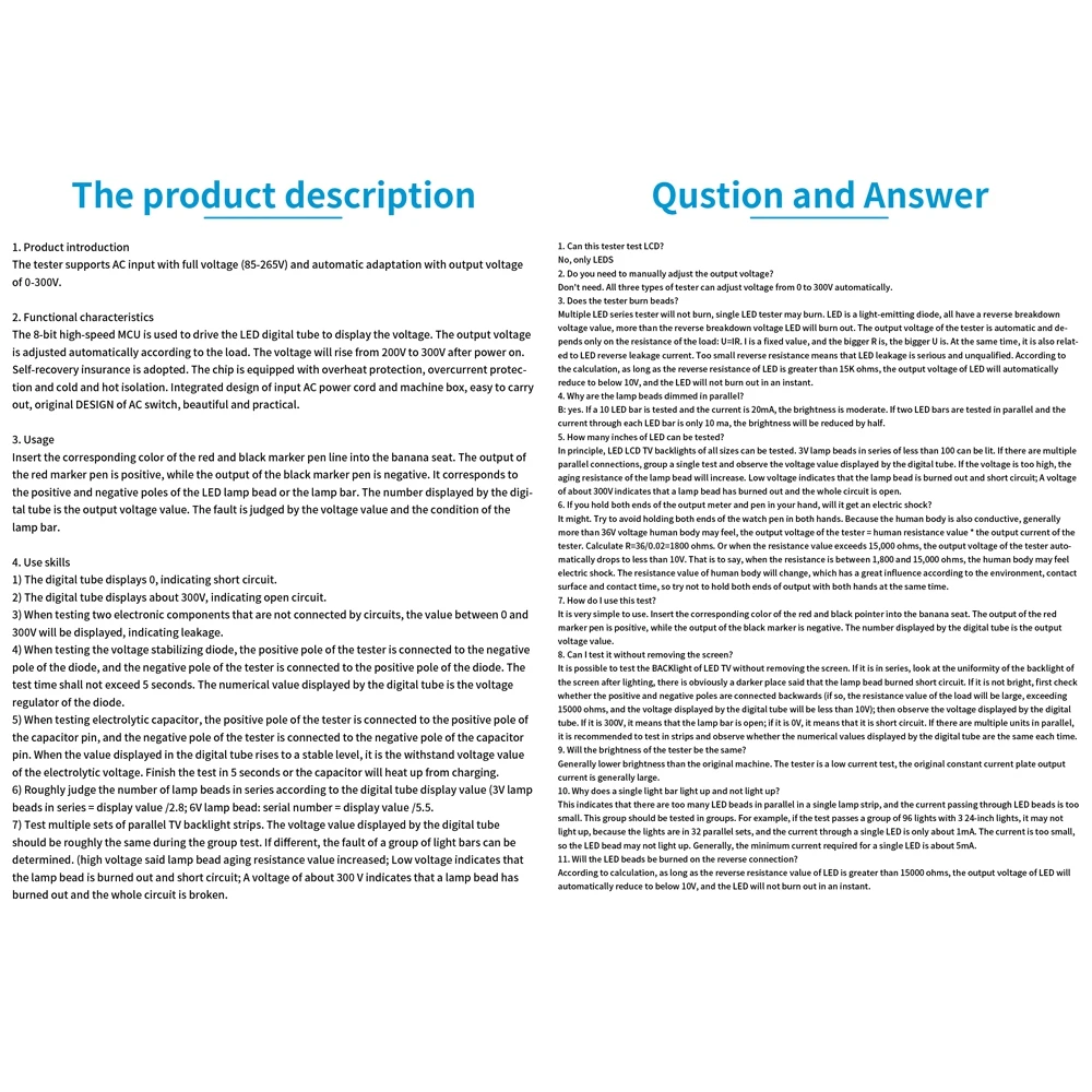 Этот светодиодный тестер подходит для одной светодиодной лампы, световых полос, светодиодной строки, светодиодной панели и интегрированного оптического светодиода.