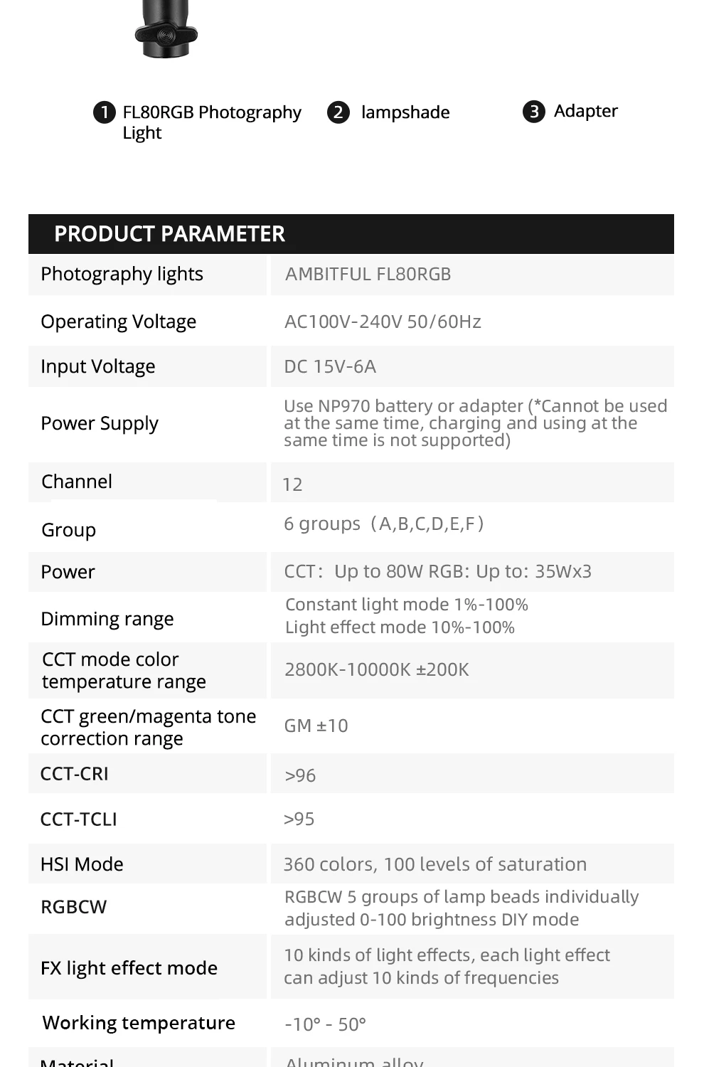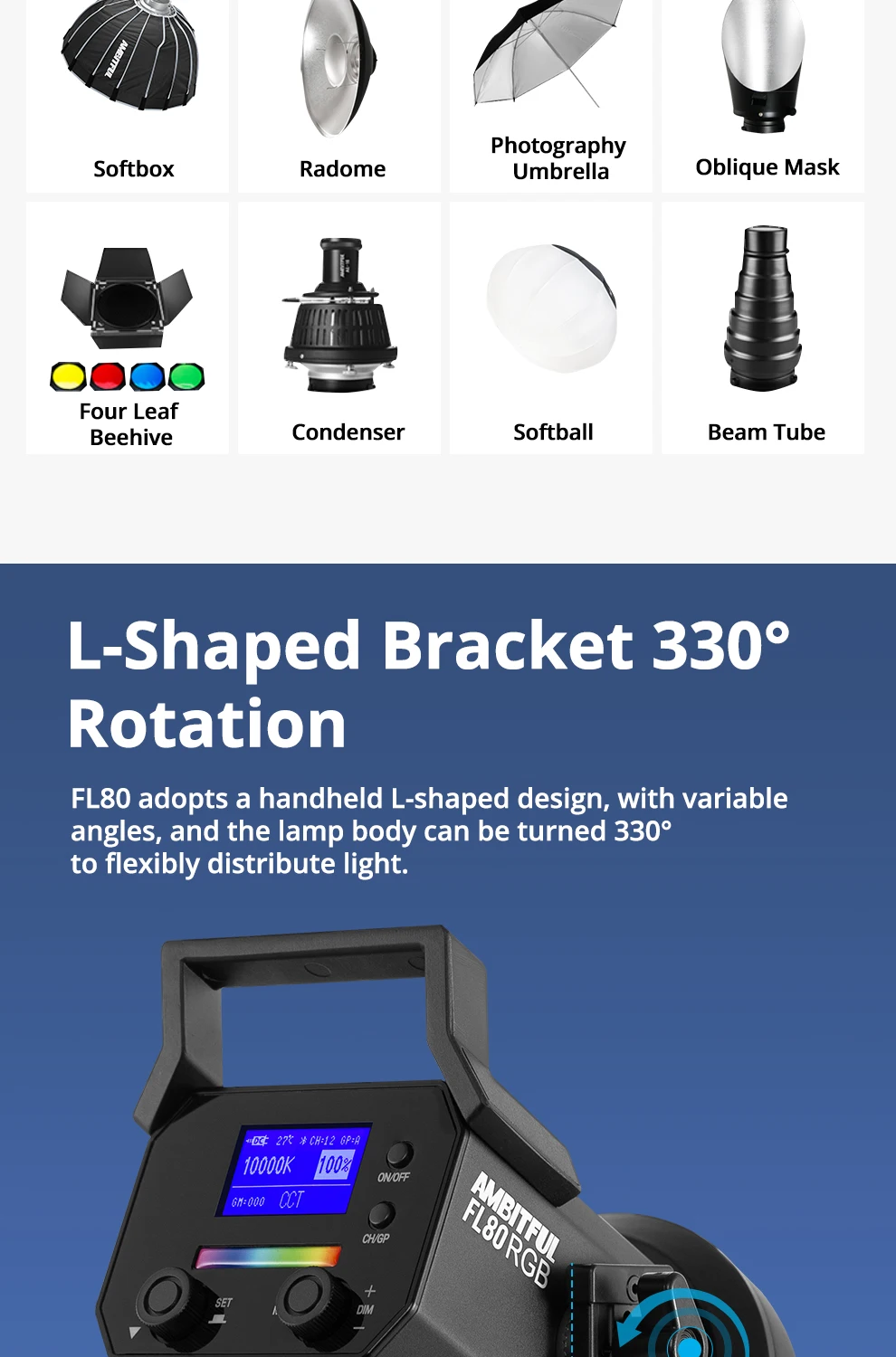 Светодиодная лампа для видеосъемки AMBITFUL FL80 RGB
