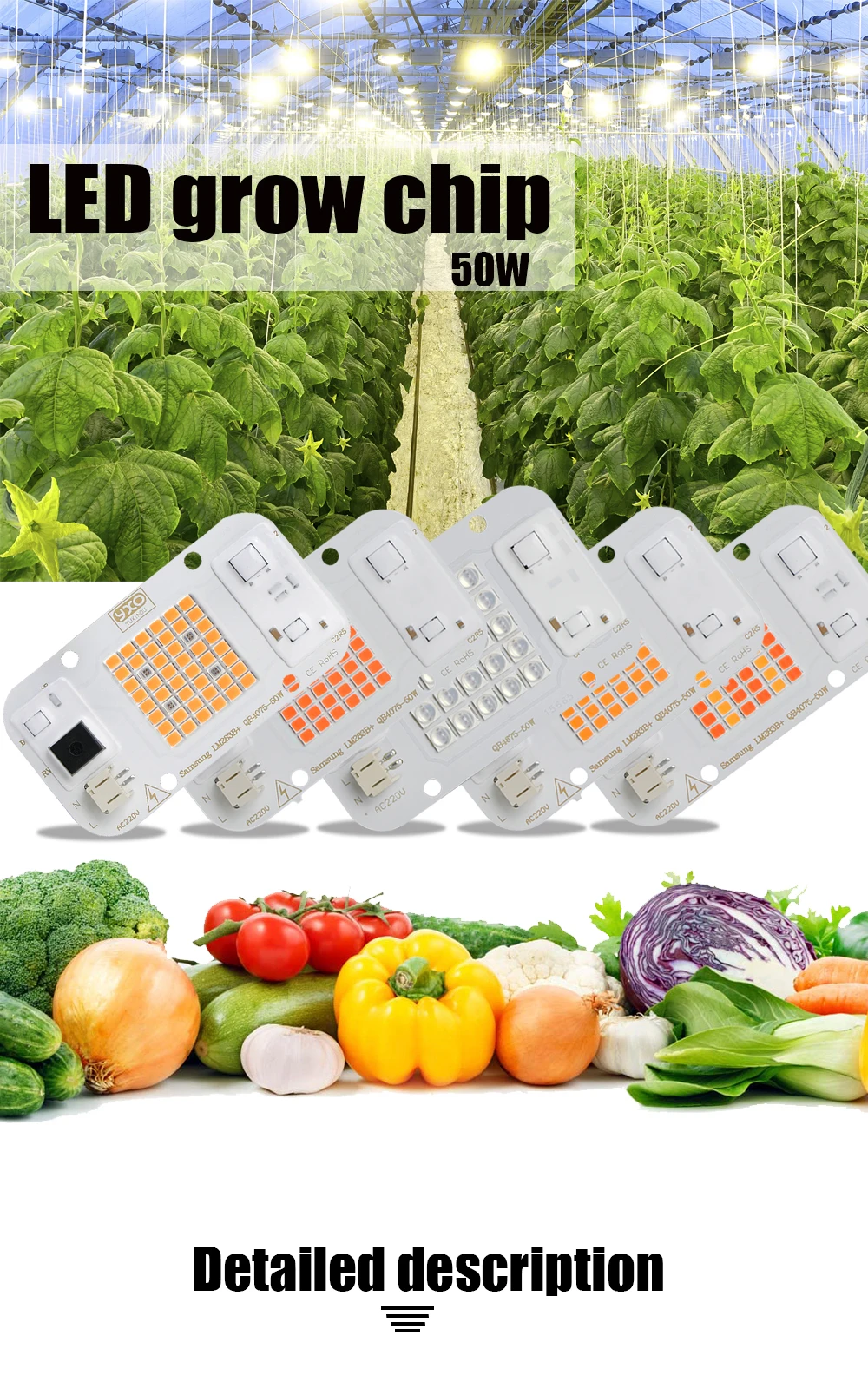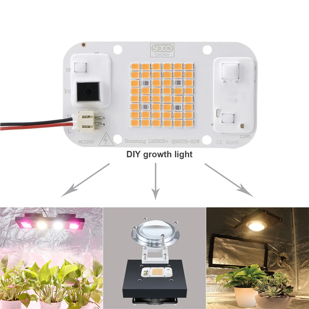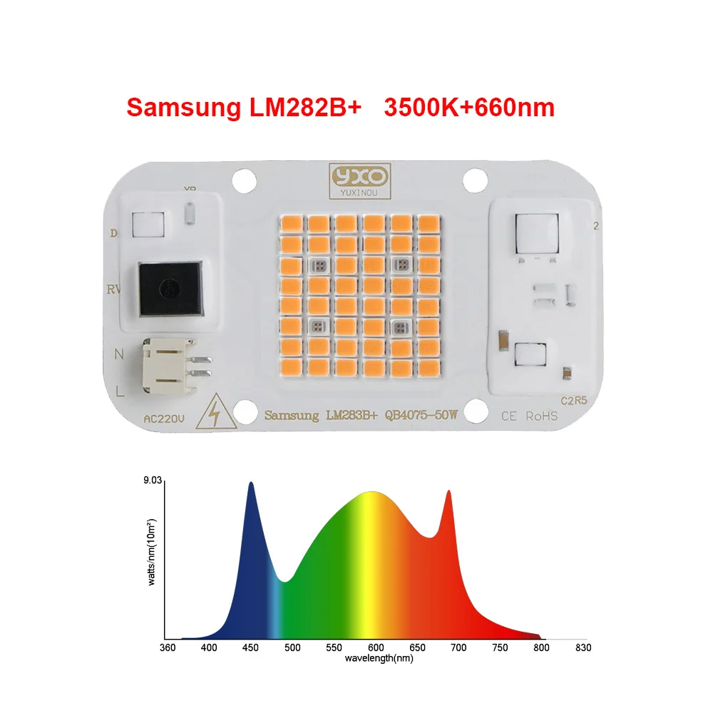 Светодиодная лампа DOB с регулируемой яркостью для выращивания растений, 220 нм, В переменного тока, 50 Вт