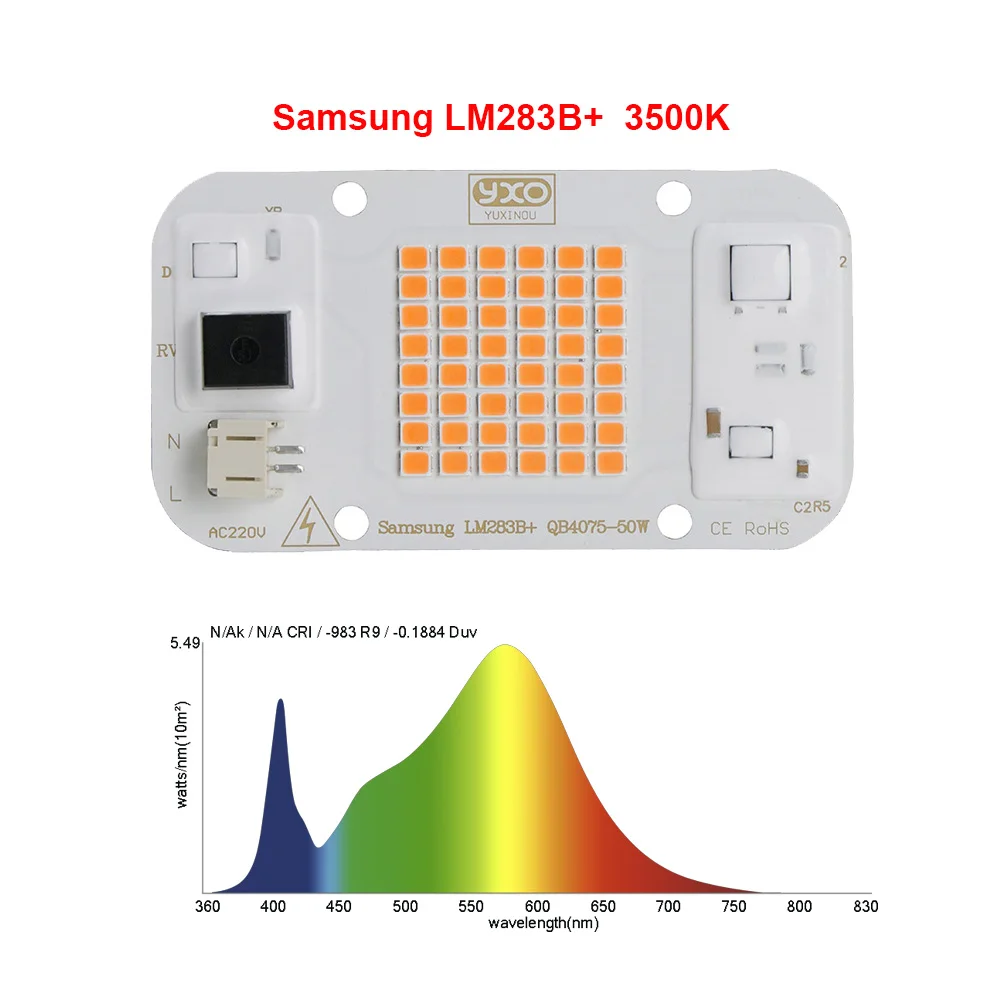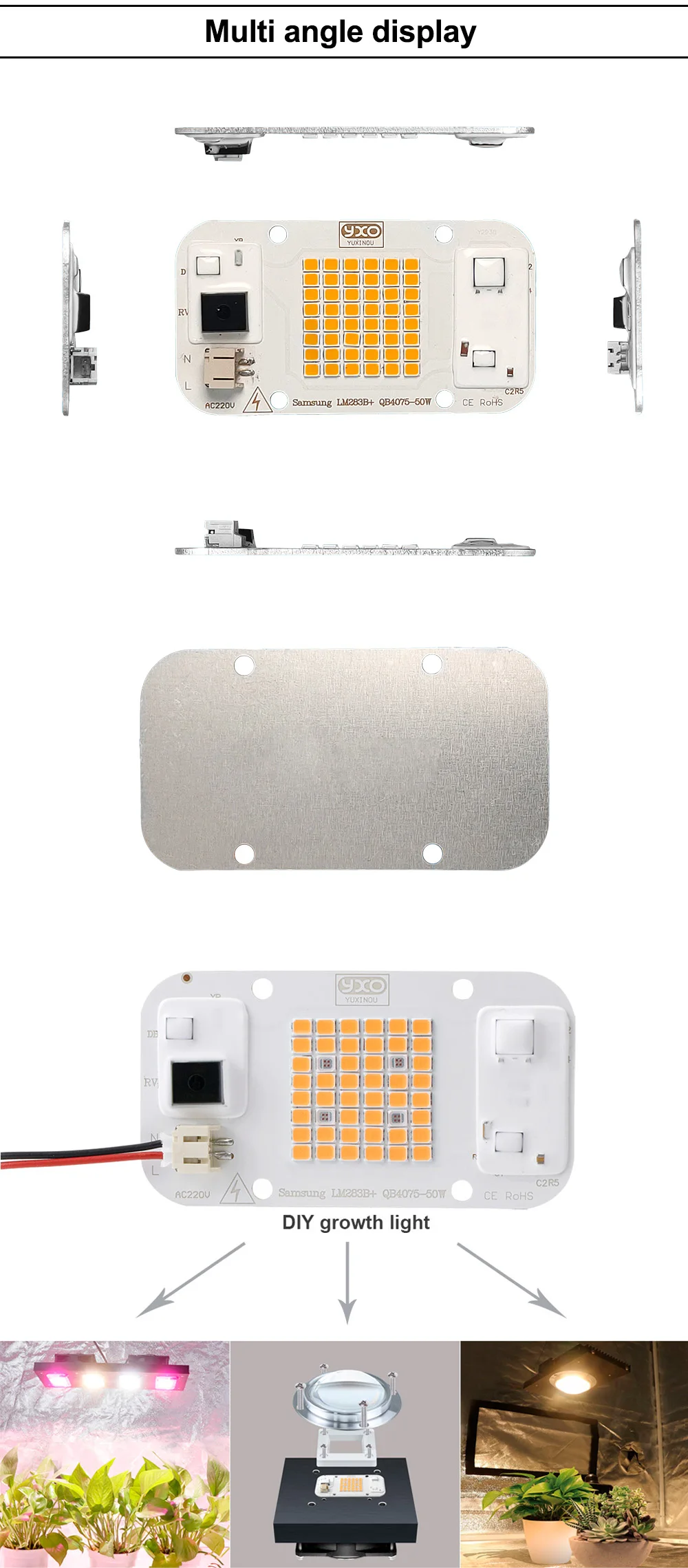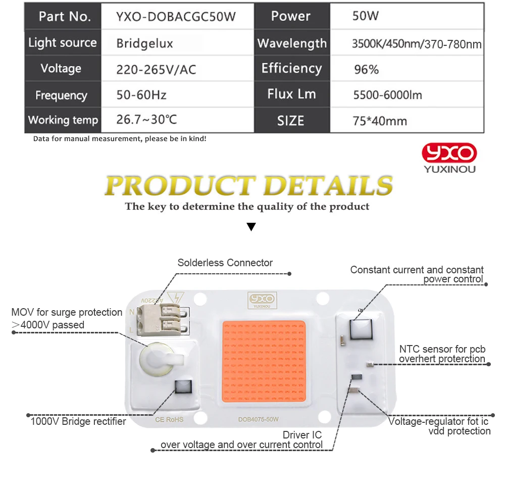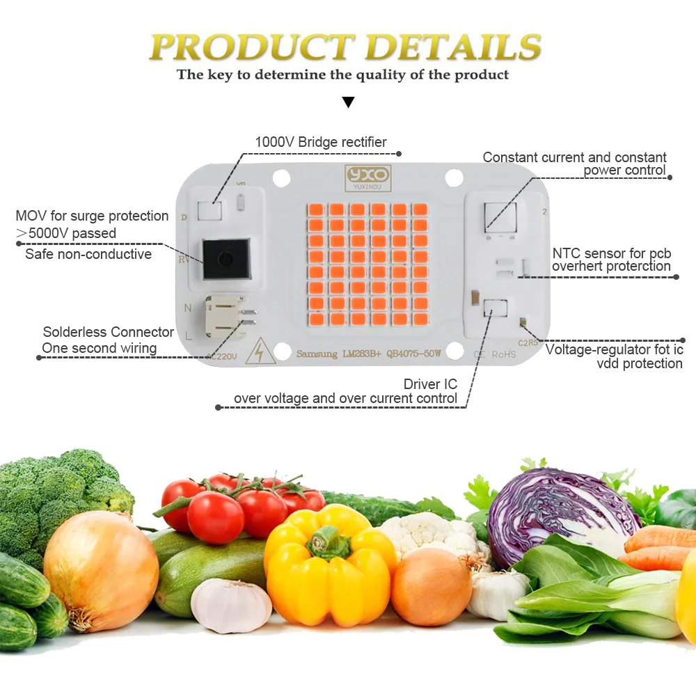 Светодиодная лампа DOB с регулируемой яркостью для выращивания растений, 220 нм, В переменного тока, 50 Вт