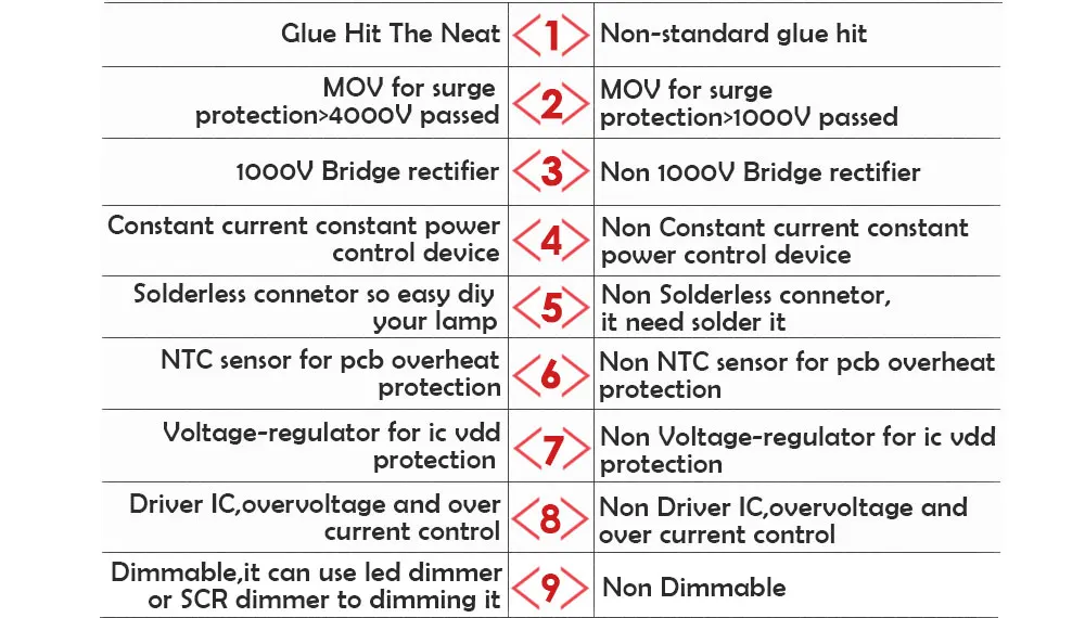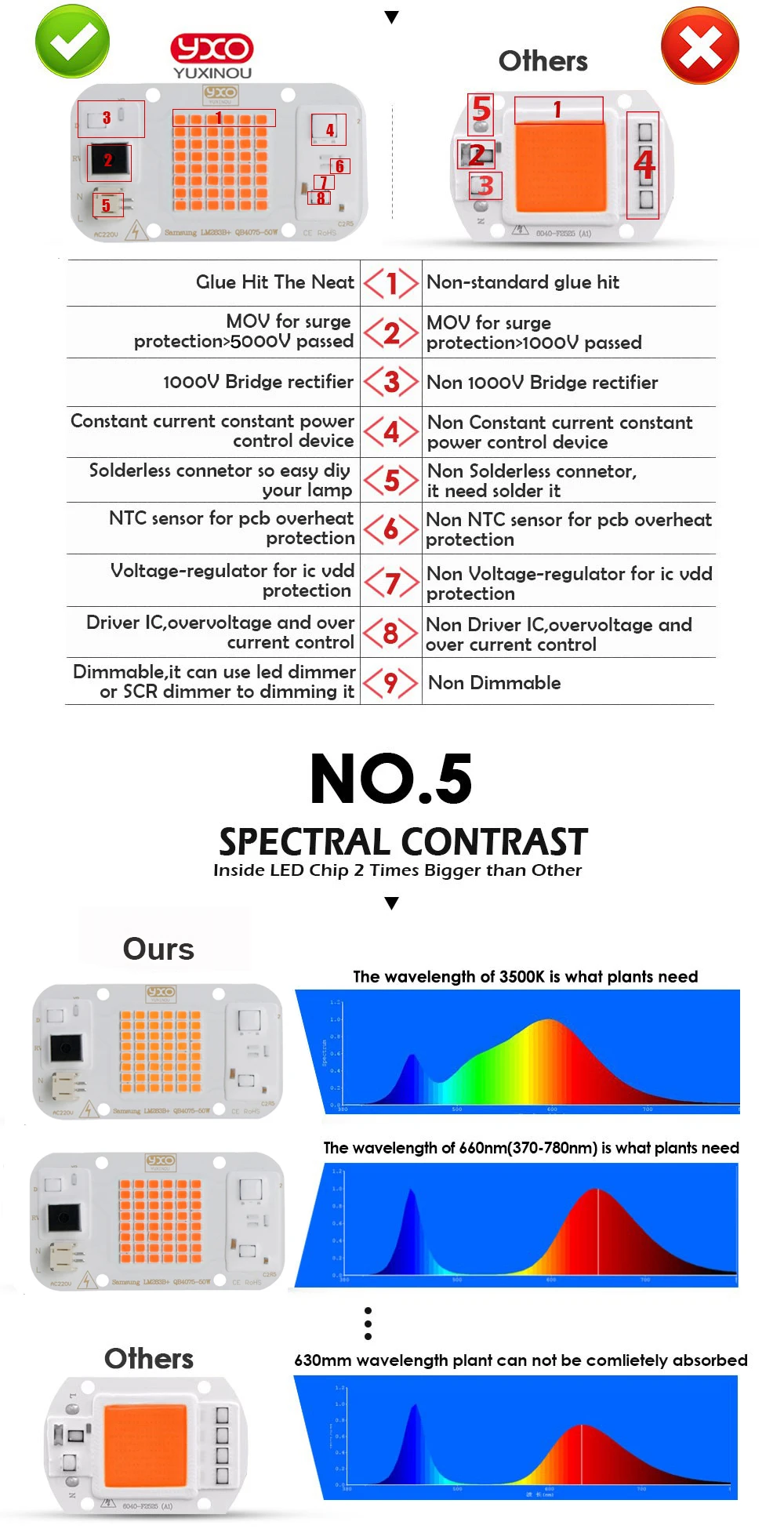 12. Почему наш светодиодный чип лучше, чем другой чип, потому что это новая технология DOB, есть 6 функций для защиты светодиодного чипа длительный срок службы.