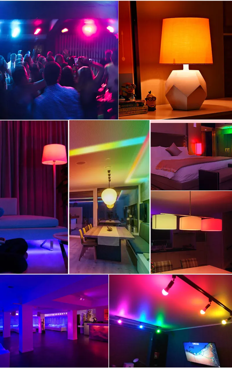 Светодиодная лампочка E12/E14/E26/E27, цветная неоновая лампочка для помещений, лампочка, лента RGB с контроллером освещения, приглушаемая умная лампа для дома
