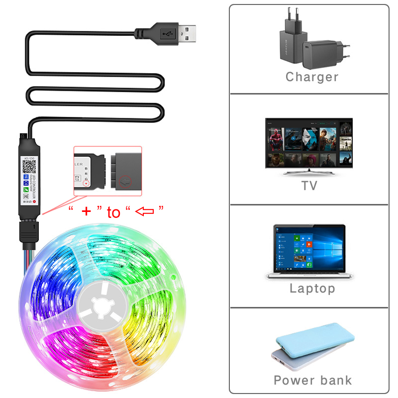 1 м-30 м Светодиодная лента 5050 RGB USB Гибкая лампа лента диодный кабель Bluetooth приложение управление Настольный экран ТВ фоновое освещение