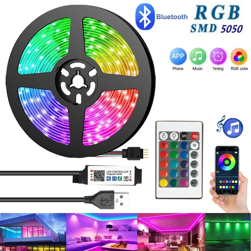 Светодиодная лента, 30 метров, самоклеящаяся, 5050 RGB, USB, гибкий кабель для лампы, Bluetooth, управление через приложение, настольный экран, ТВ, фоновое освещение