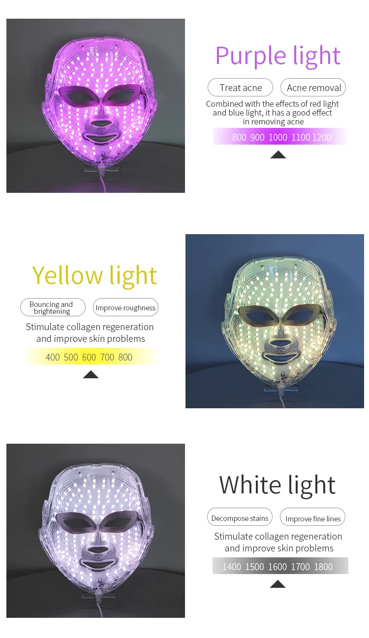 1,7-цветная Светодиодная лампа. Мы принимаем Определенные длины волн света (IPL) для улучшения кровообращения, ускорения обмена веществ, производства богатого коллагена, повышения эластичности кожи и улучшения качества кожи без побочных эффектов.