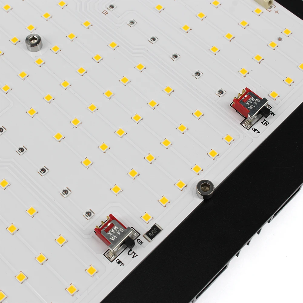 288 шт. светодиодный чипов на каждой плате, УФ-ИК может включать/выключать, но УФ-ИК-переключатели с проводами, а не на плате.