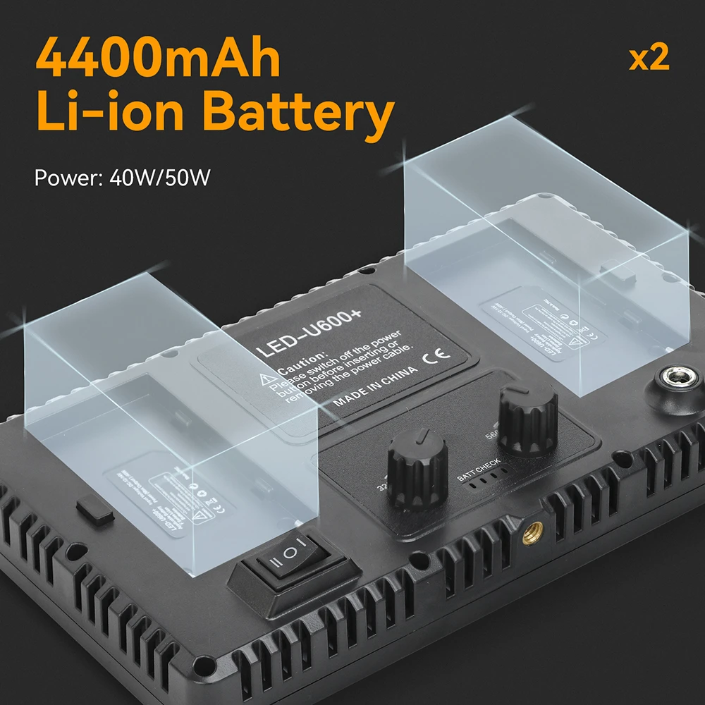 Оснащен уникальным встроенным аккумулятором емкостью 8800 мА · ч (2 аккумулятора емкостью 4400 мА · ч нужно купить), он может помочь вам снимать даже в тех местах, где мощность вилки неудобна; вы также можете включить светильник с помощью прилагаемого адаптера питания. Szkoston.