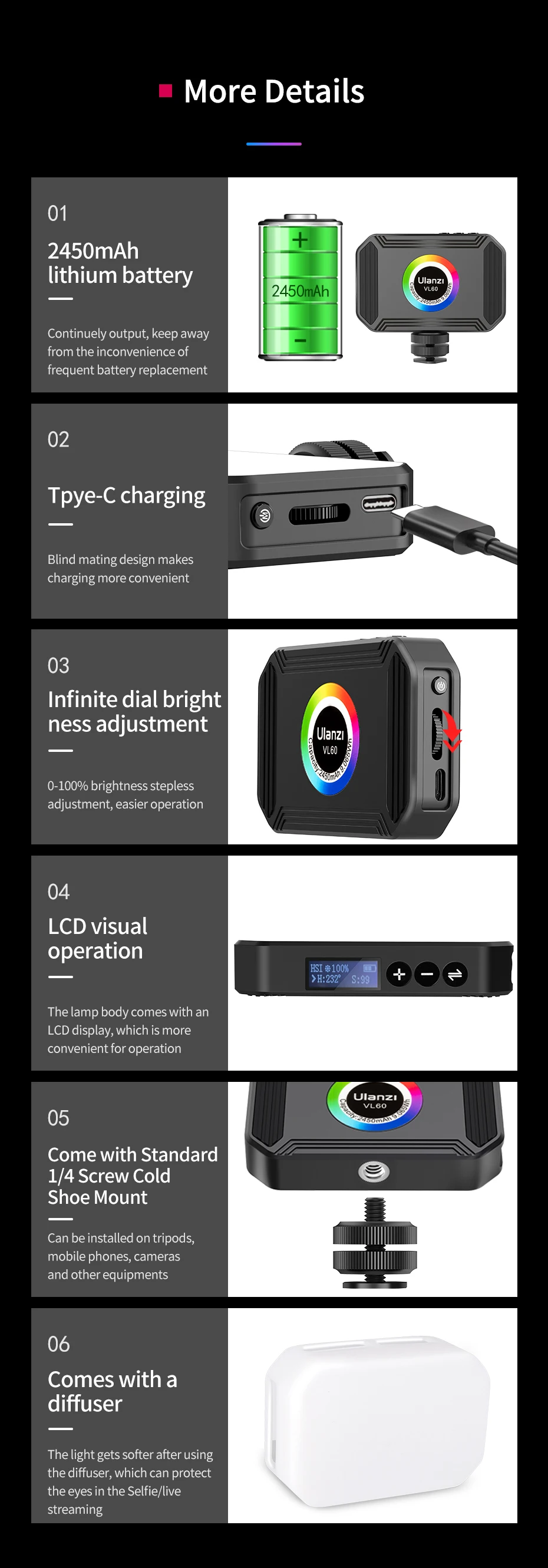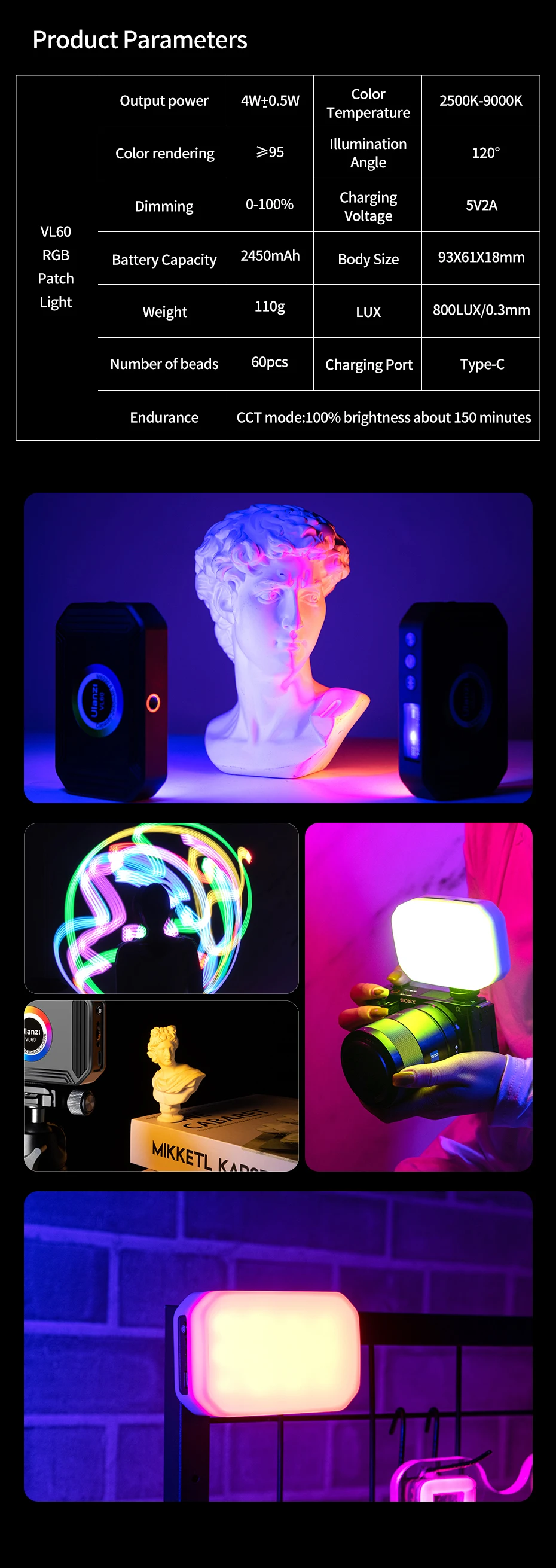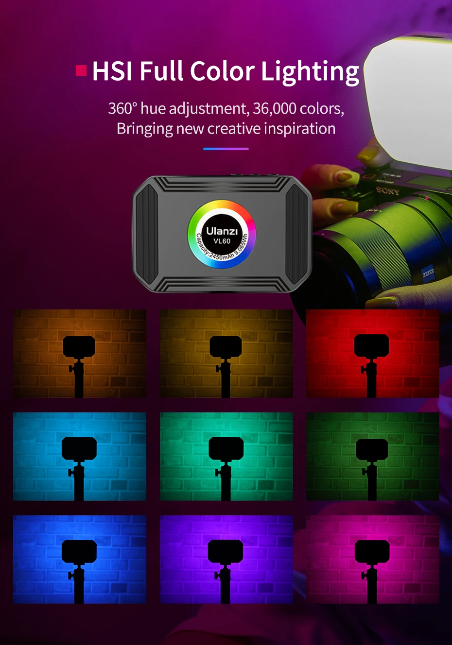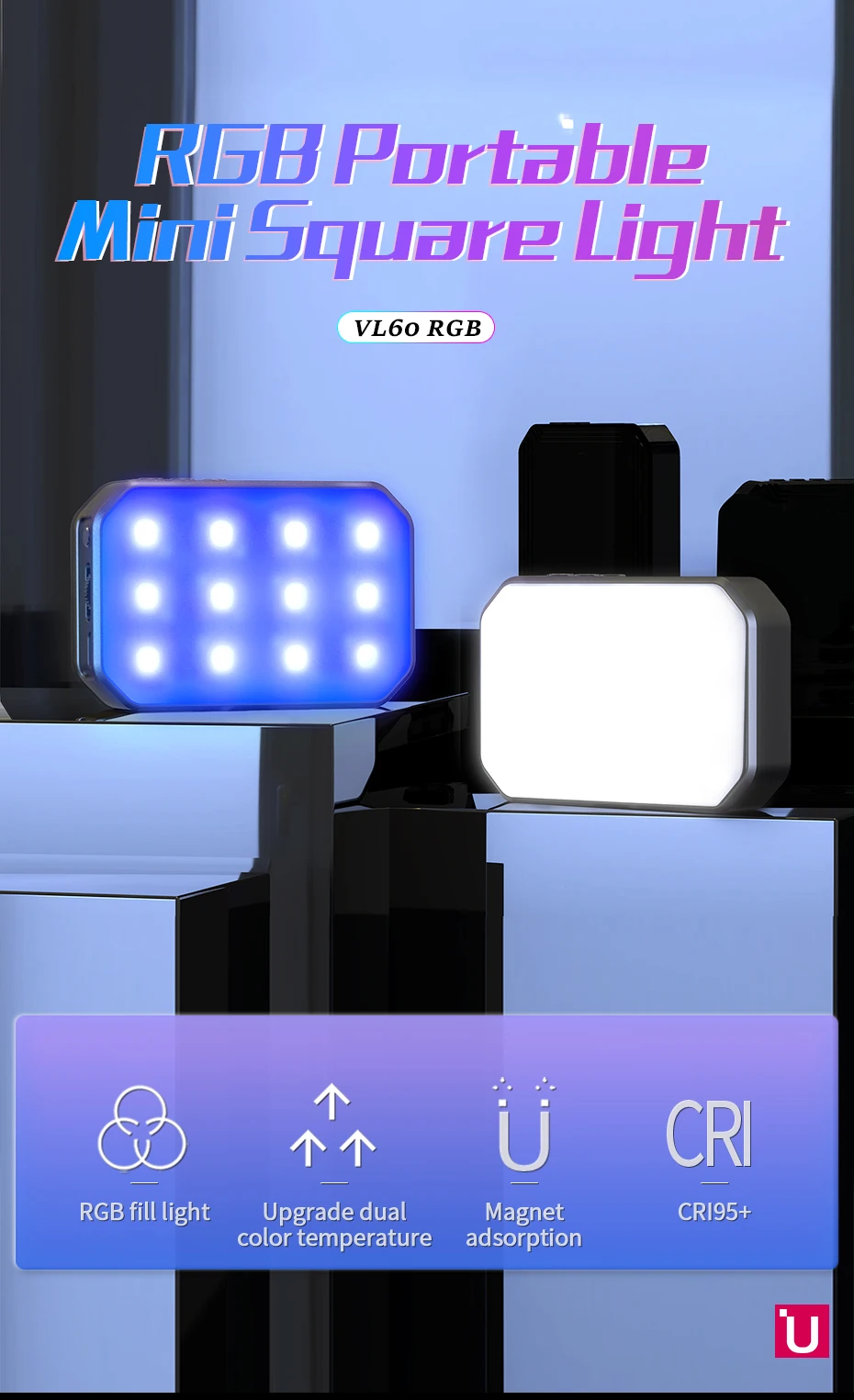 Светодиодная подсветка для камеры Ulanzi VL60 RGB с магнитной регулировкой яркости CRI95 + 2500K-9000K