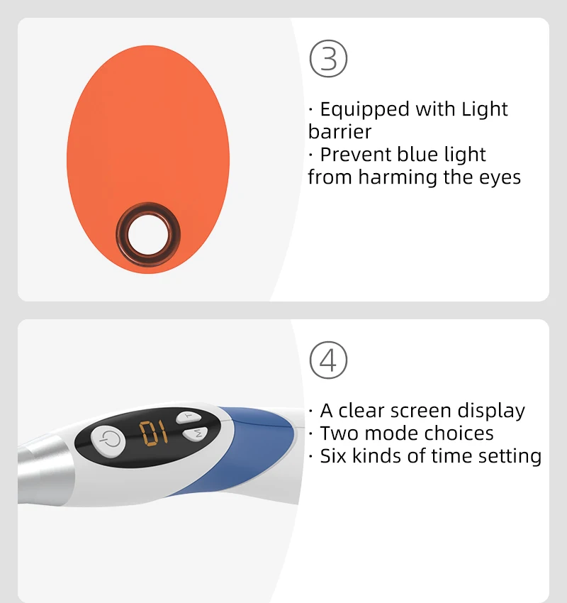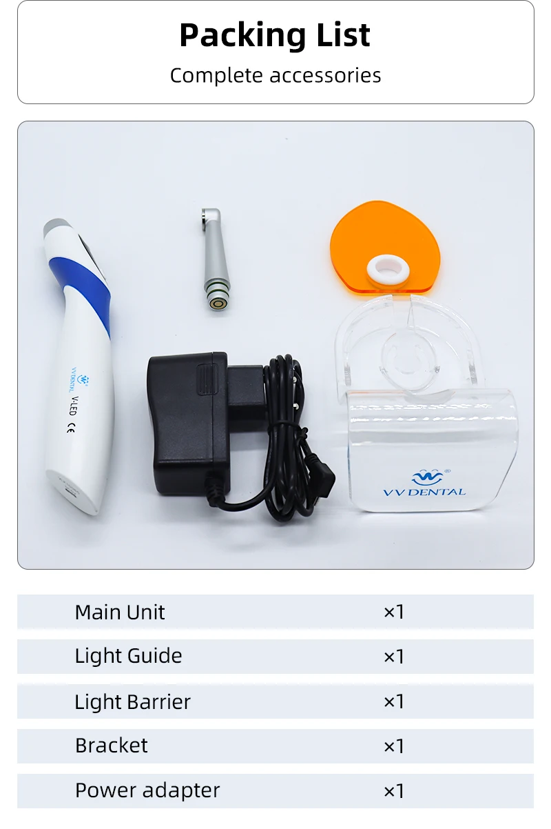 VV Dental Аккумуляторная полимеризационная лампа LED 1S Светоотверждение Стоматологическая Фотополимеризация Отверждение Высокая интенсивность 2500 мВт/куб. Стоматологическое оборудование LV7