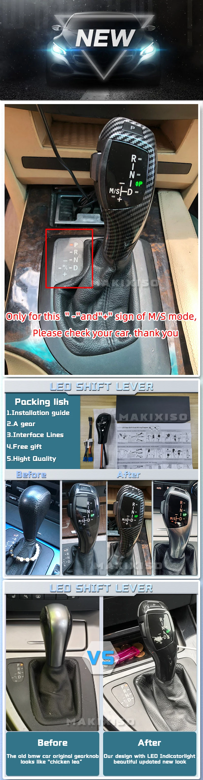 Светодиодная ручка переключения передач для BMW 1 3 5 6 Series E90 E60 E46 2D 4D E39 E53 E92 E87 E93 E83 X3 E89, автоматические аксессуары