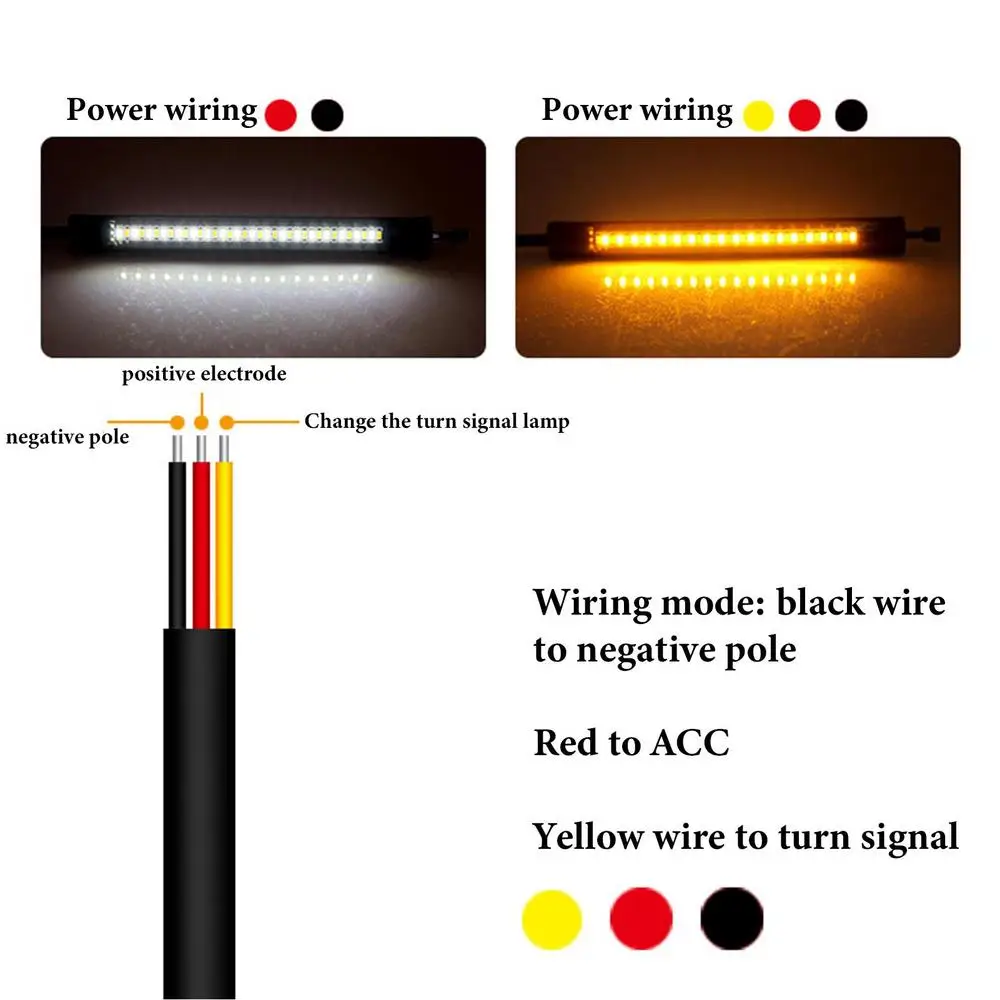 Способ подключения: черный провод к отрицательному полюсу, красный провод к ACC, желтый провод для сигнала поворота