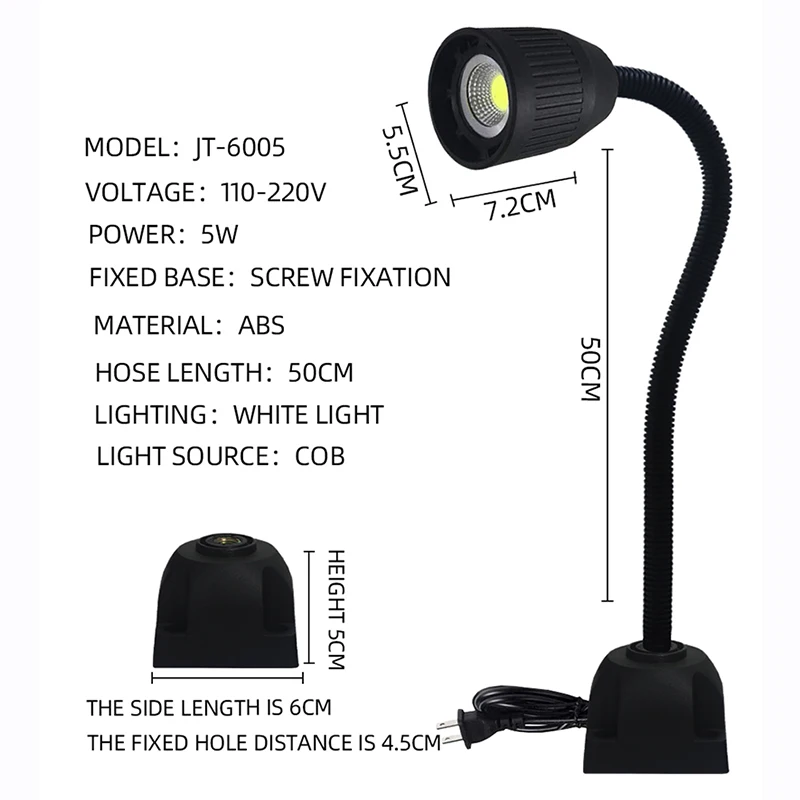 Светодиодные рабочие лампы для станков, 220 В, 5 Вт, 40 см