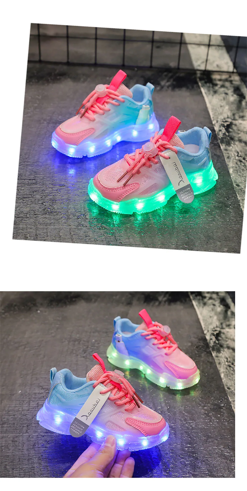 Светодиодные разноцветные кроссовки для детей, перезаряжаемая модная спортивная обувь в Корейском стиле для детей, противоскользящая обувь для мальчиков и девочек для бега