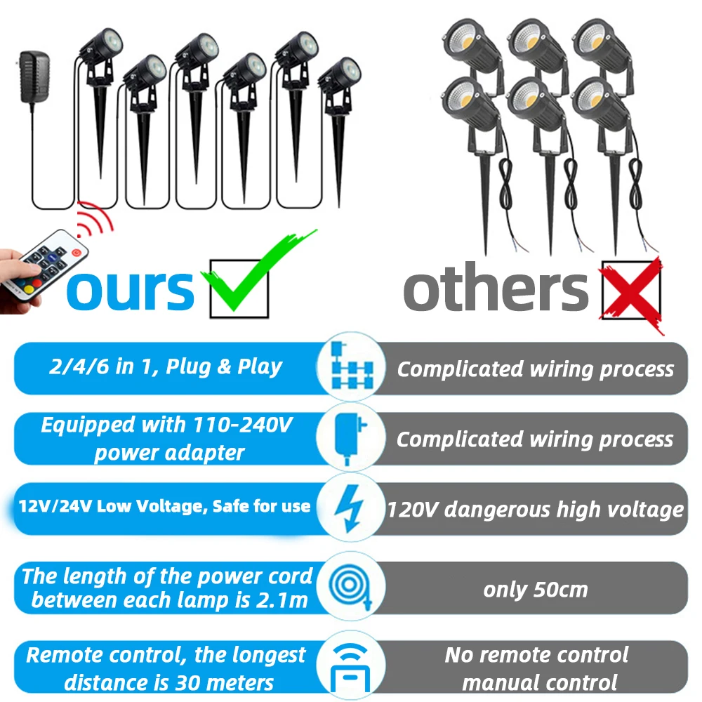 5 、 вращающийся патио ландшафтный светильник ing: 2/4/6 шт. 360 ° регулируемый низкого напряжения светильник ing освещает ваш сад, двор, дорожки с светильник со всех сторон, широко используется для наружной отделки легко установить, просто вставьте шип-подставку в газон, нет необходимости в других инструментах.