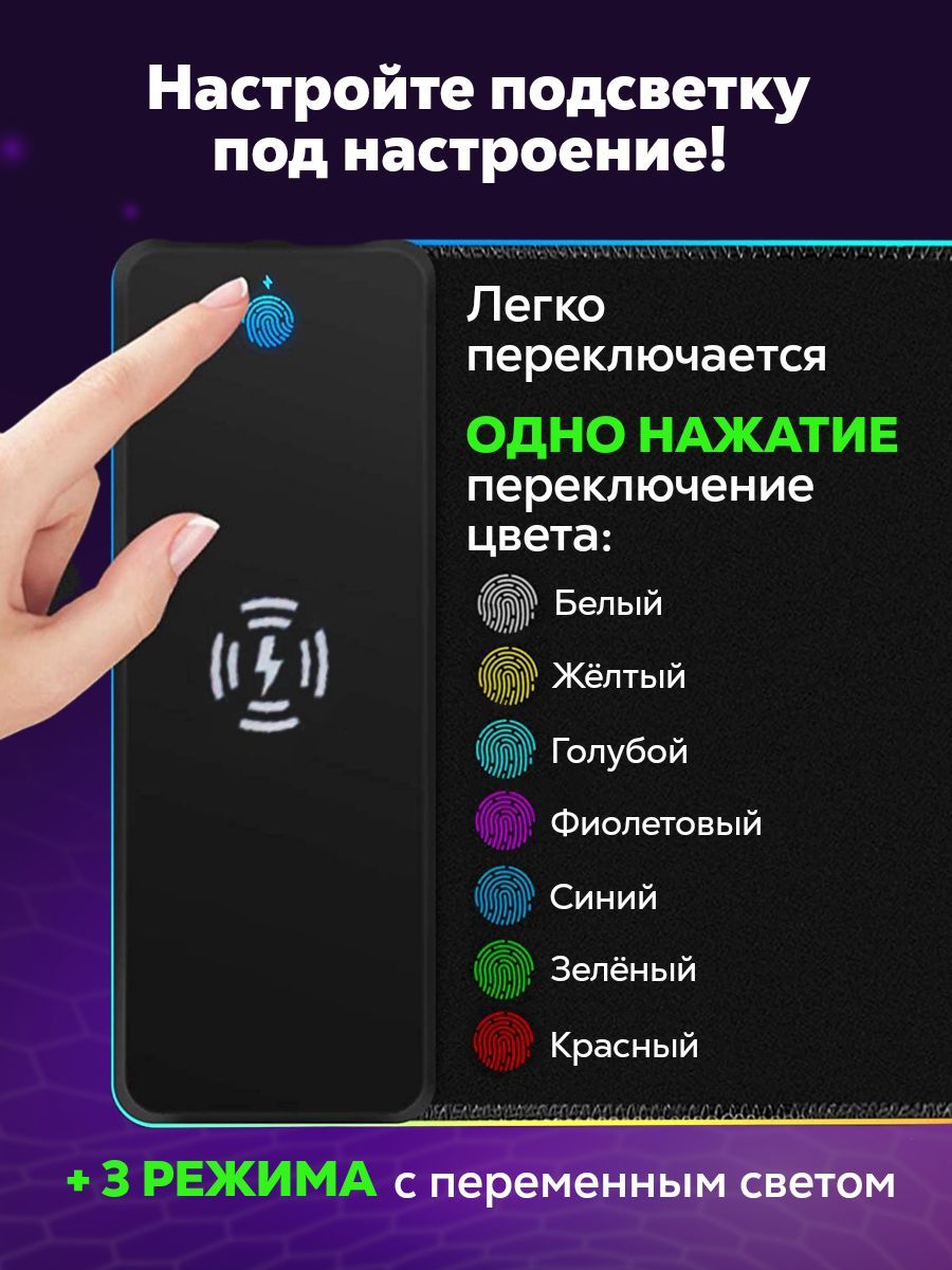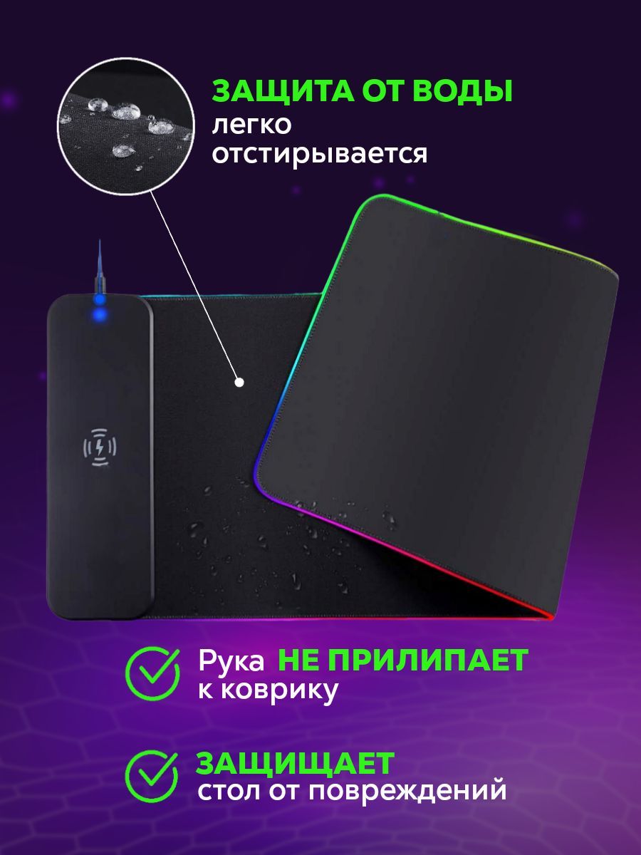 Особенности коврика: Беспроводная зарядка для мыши, Нескользящая основа, Подсветка