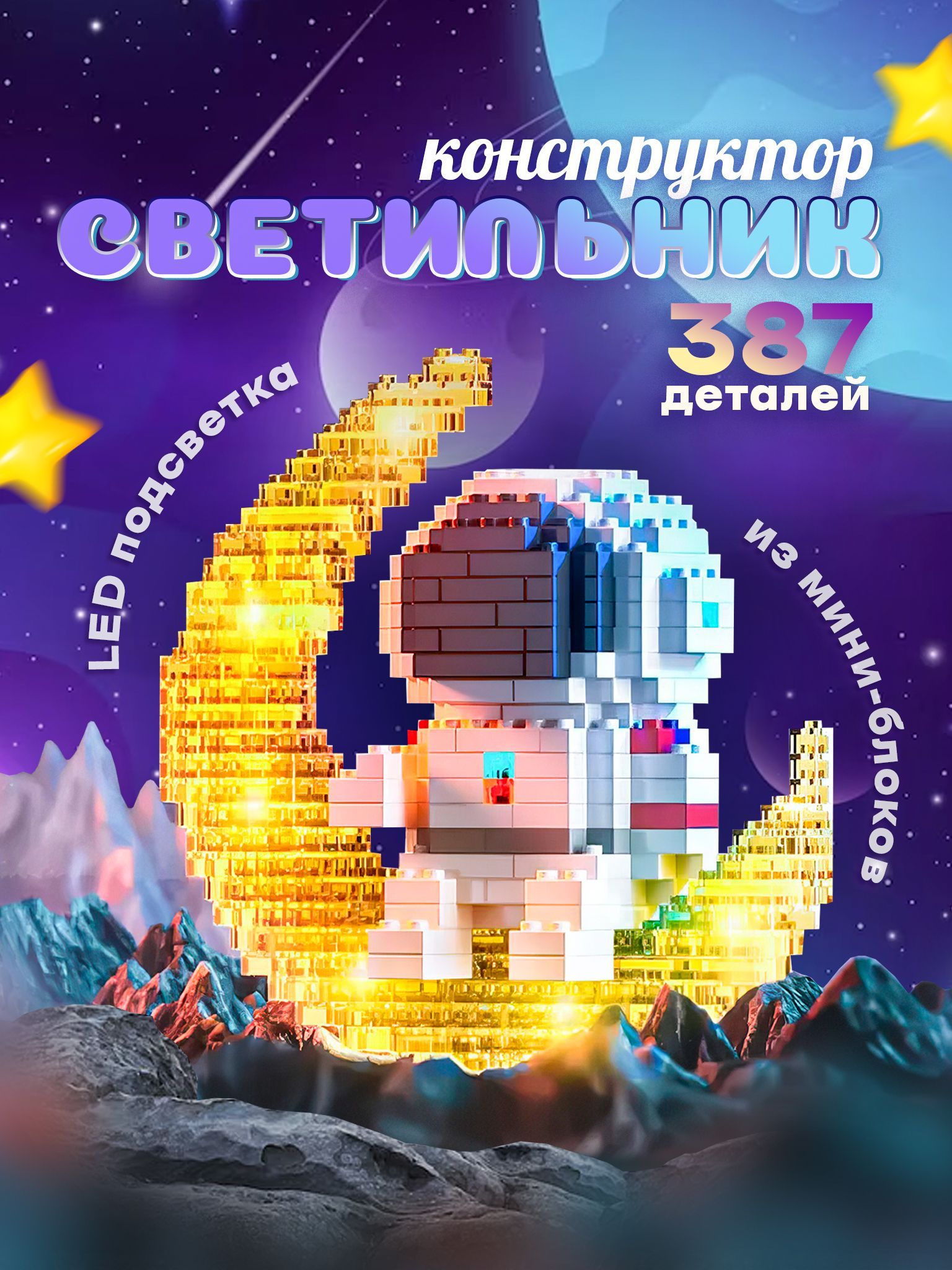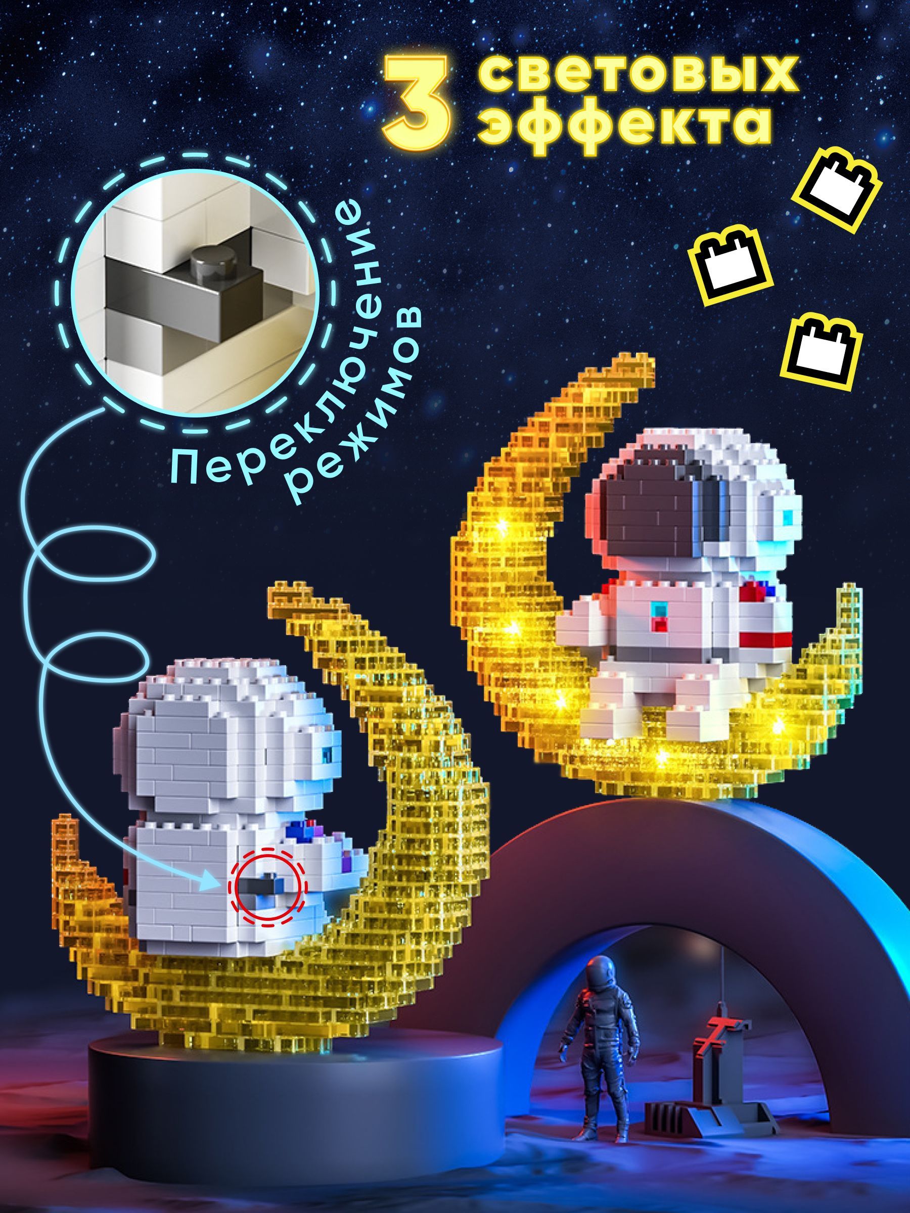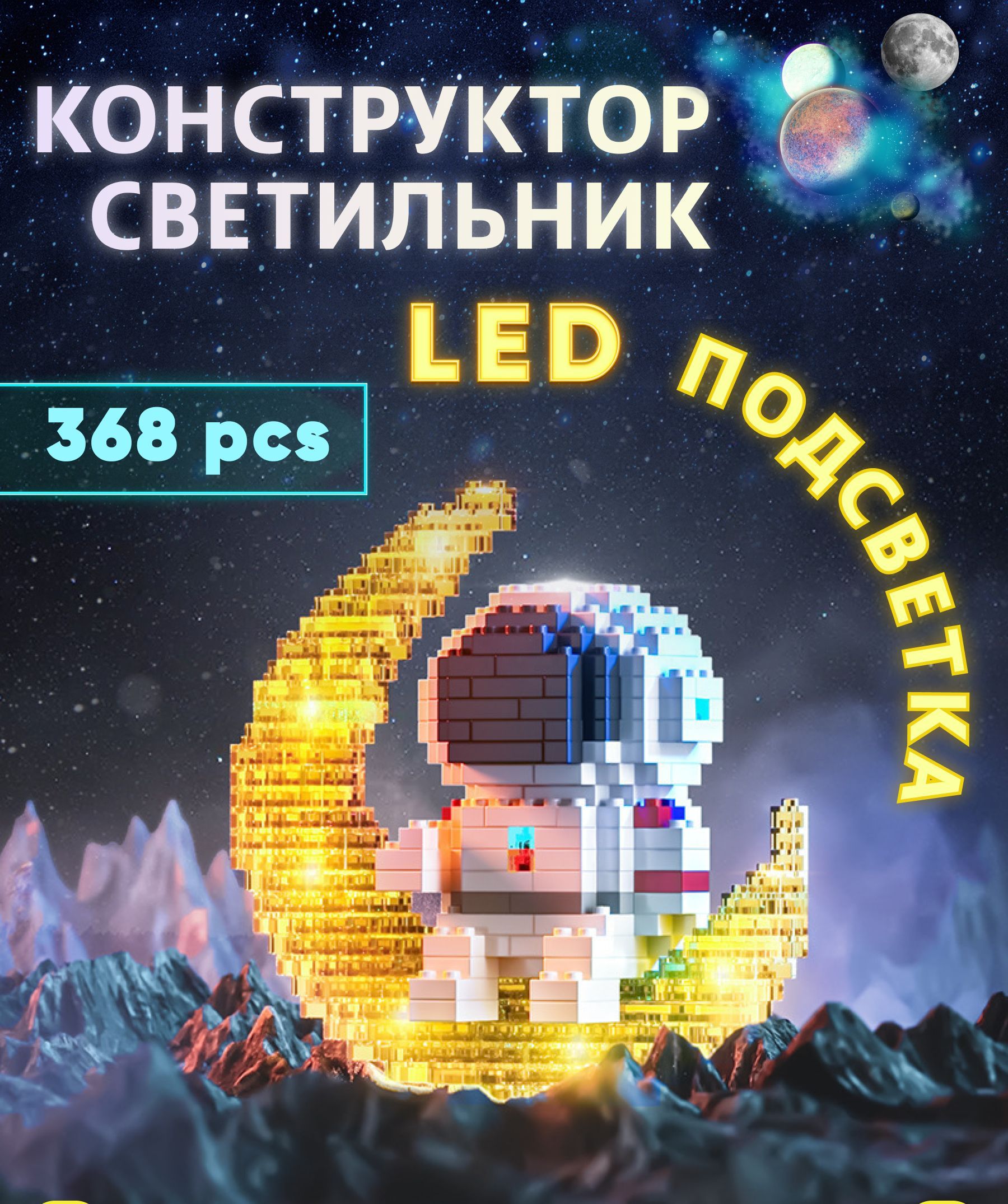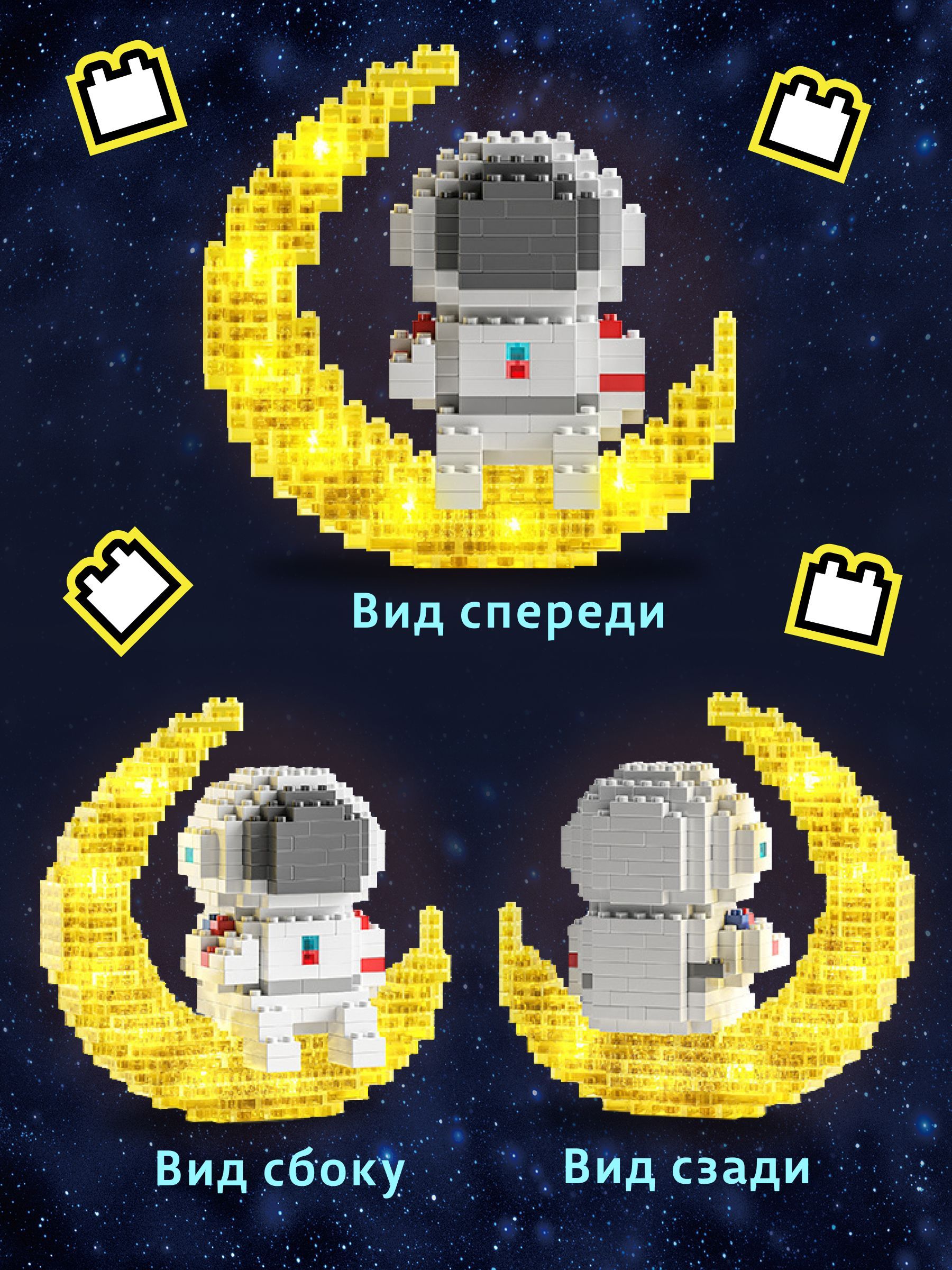 Светодиодный конструктор светящийся космонавт 3D из миниблоков 368 деталей