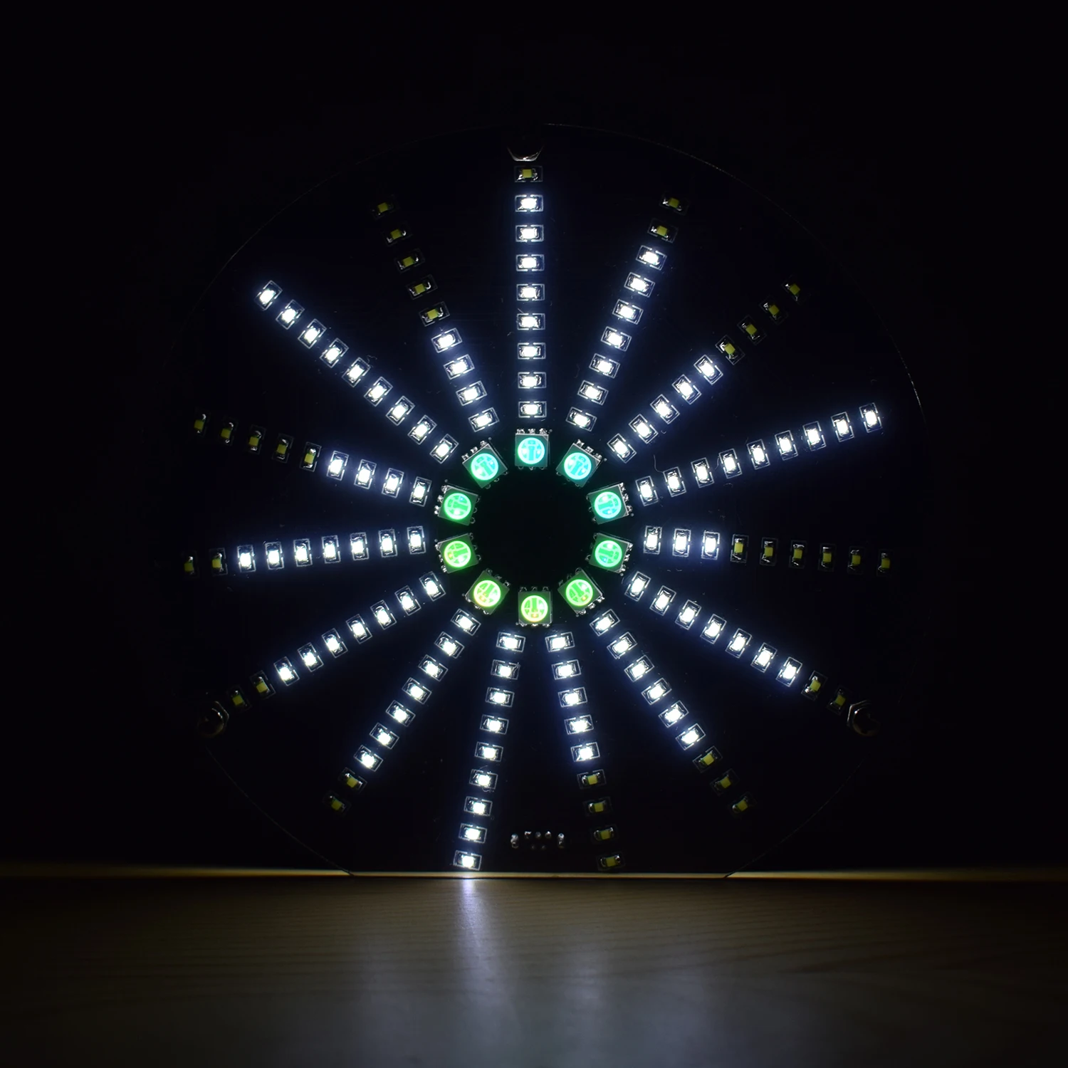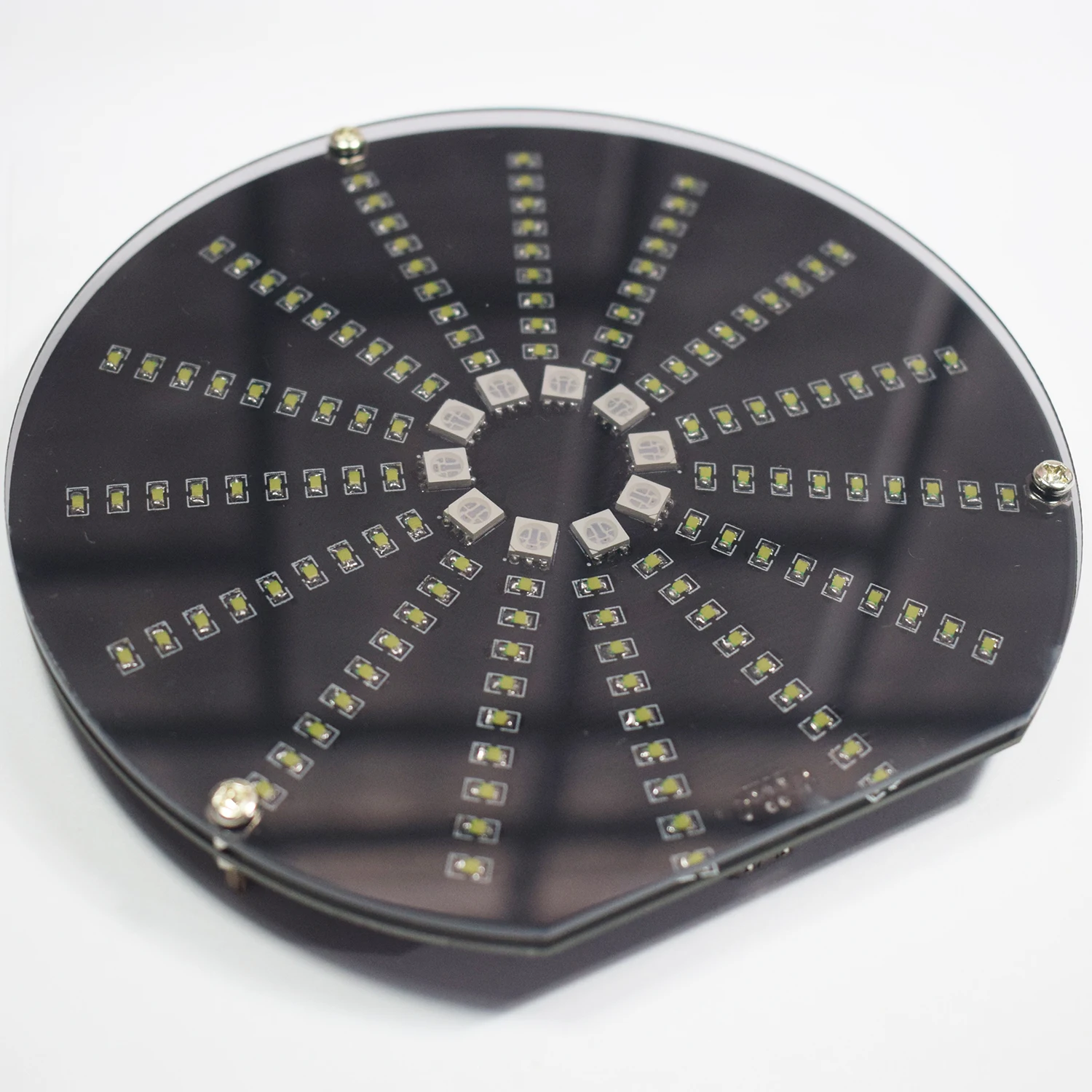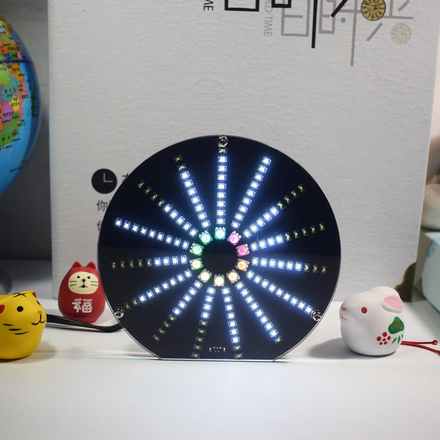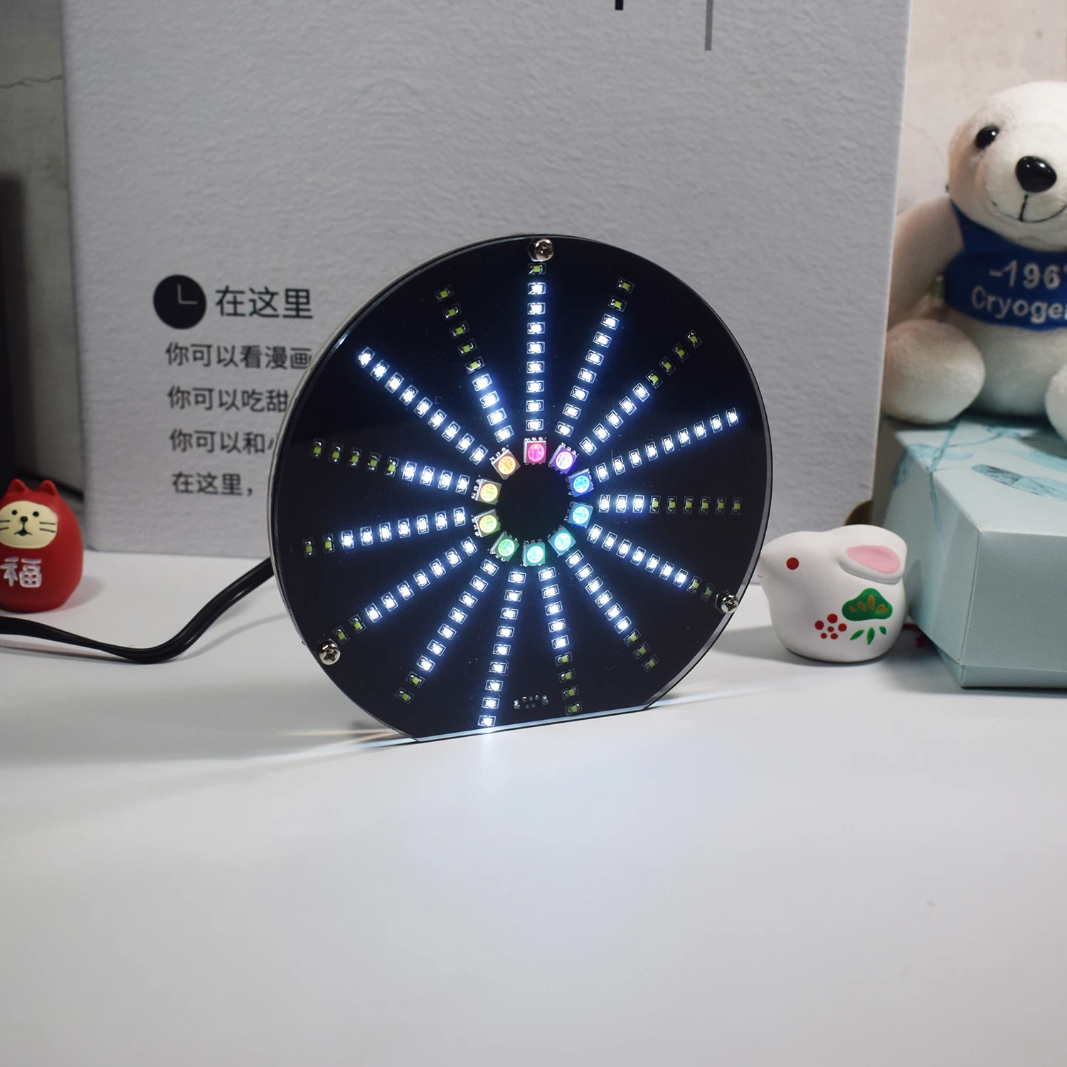 Этот набор DIY представляет собой уникальный круговой музыкальный спектральный дисплей, состоящий из двух видов светодиодов. Внутренний круг разработан 10 полноцветными светодиодами. Внутренний круг может производить различные цветовые вариации в соответствии с разными музыкальными ритмами. Внешний круг спроектирован белым светодиодный. Эффект разложен по центру, и каждый вертикальный светодиодный индикатор представляет собой различную частоту воспроизведения музыки. Во время воспроизведения различных музыки после того, как Программа проводит анализ музыки, светодиодный эффект внутренней и внешней кругов будет отображать различные эффекты прослушивания музыки в режиме реального времени, что принесет вам уникальный музыкальный визуальный опыт. Простой и креативный, это лучший выбор для любителей электроники.