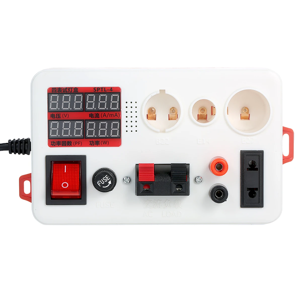 [Одна машина для нескольких целей] двойной переключатель управления, испытательное напряжение + ток + мощность + коэффициент мощности, подходит для тестирования полуготовых или готовых ламп (B22, E14, E27 Тип лампы, нагрузка переменного тока, кабельный зажим).