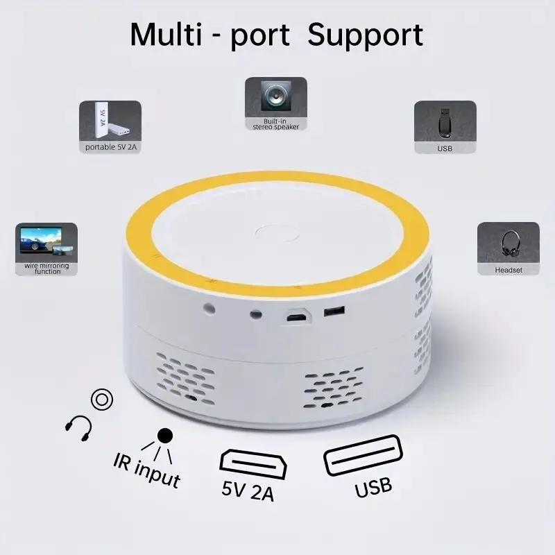 • Bluetooth-Совместимость:Этот проектор не совместим с Bluetooth, но у него есть встроенный динамик, что позволяет легко наслаждаться любимыми фильмами или презентациями без использования внешних динамиков.