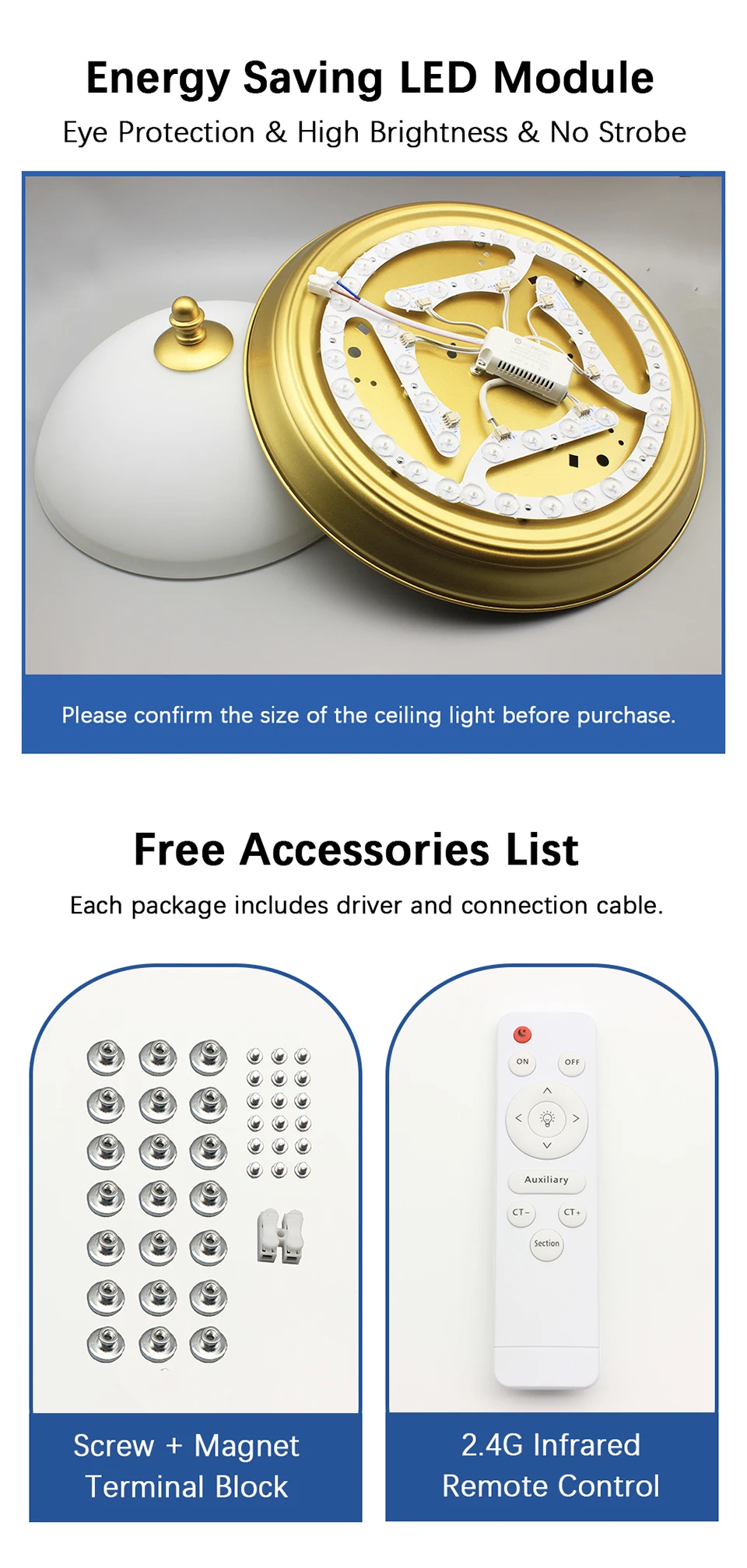Светодиодный модуль для потолочного светильника, затемнение 220 В, сменная Светодиодная светильник вая панель 72 Вт 96 Вт, энергосберегающий модуль, лампа для потолочного вентилятора, лампы