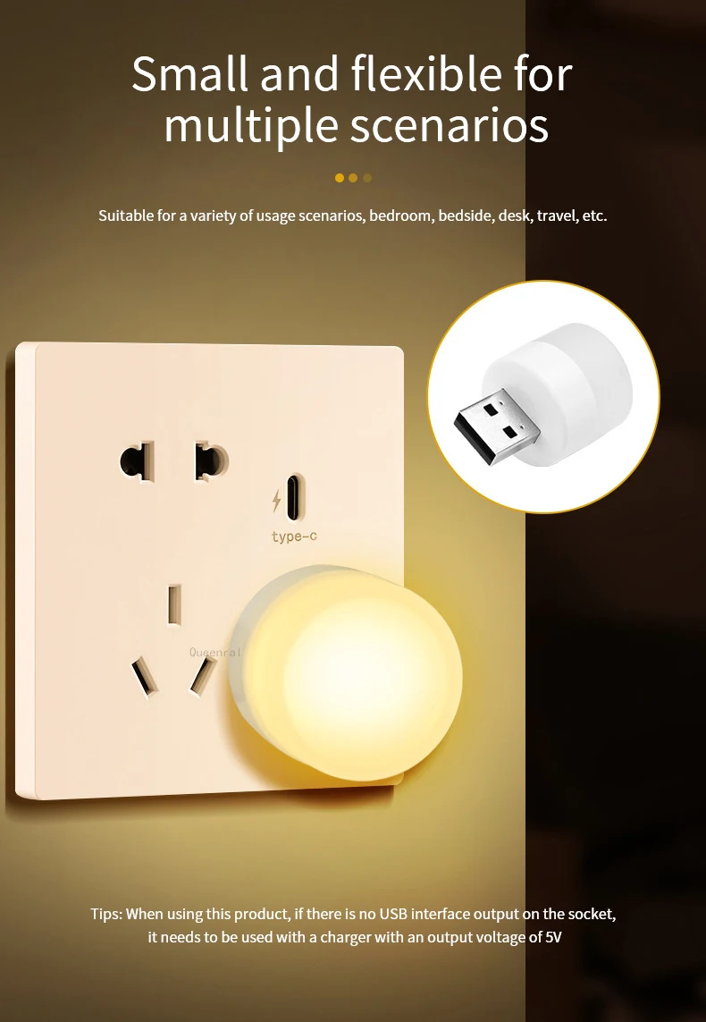 【Portable】 USB ночник, мягкий свет, подходит для ночного сна и портативного освещения.