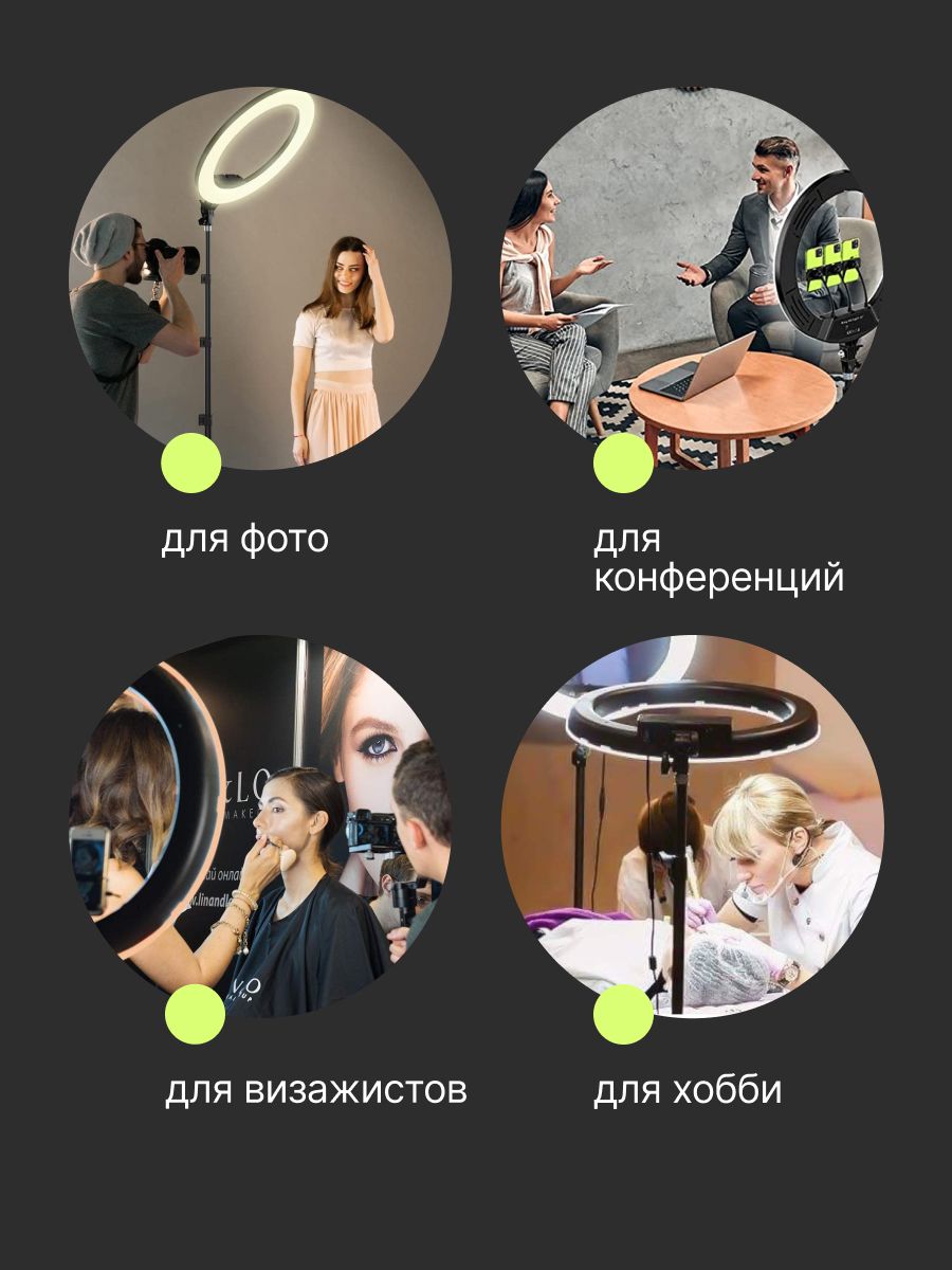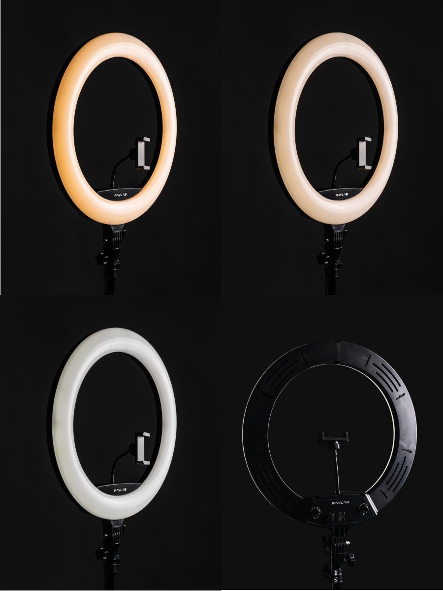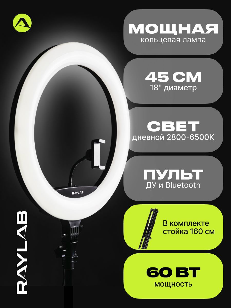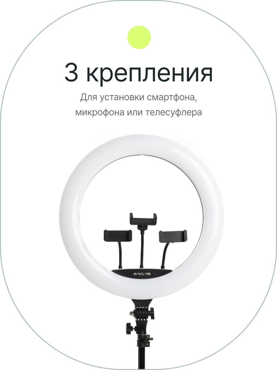 Описание: Светодиодный осветитель Raylab RL-0118 Kit кольцевой. Модель: RL-0118 Kit. Мощность лампы, Вт: 45-56. Световой поток, Лм: 3800. Цветовая температура, K: 2800-6500K. Тип лампы: LED. Количество ламп:400 диодов. Срок службы LED: 50 000 часов. Питание: DC12V, adaptor 12V. Материал корпуса: алюминий, пластик. Комплектация: держатель смартфона \ кольцевая лампа \ переходник с USB на розетку \ пульт ДУ лампой \ пульт ДУ смартфоном (Bluetooth) \ сетевой кабель \ стойка \ сумка \ шаровая голова \ зеркало. Кольцевая лампа Raylab - идеальный свет для фотосессии, бьютинга, нэйлинга или как домашний осветитель. Наш инновационный led свет - это незаменимое оборудование для фотографа, видеографа и контент-мейкера, данный фотосветильник обеспечивает яркое, мягкое и равномерное освещение сцены или объекта. Светодиодная лампа настольная легко переносится и устанавливается, что делает наши кольцевые осветители идеальным выбором для творчества в различных условиях. Независимо от вида съемки- предметная съемка, студийная съемка или дома, фуд съемка, портретная съемка или фэшн съемка, наш видеосвет предоставит Вам все необходимые средства для создания профессиональных и креативных работ. Хотите сделать профессиональные селфи или видеозапись на своем смартфоне? Наш штатив для телефона с лампой специально разработан для этой цели. Просто установите ваш телефон на удобный держатель и наслаждайтесь идеально выровненным и мягким видеосветом, который подчеркнет вашу красоту и улучшит качество видео. Штатив с лампой Raylab сделает коллаборации с блогерами и контент-криэйторами более профессиональными. Это надежное решение для создания контента в помещении или на открытом воздухе. Наше оборудование для видео Raylab также идеально подходит для создания видеосвета, обеспечивая качественное освещение для съемки видео контента на разных платформах. Этот светодиодный осветитель Raylab выведет ваши работы на новый уровень.