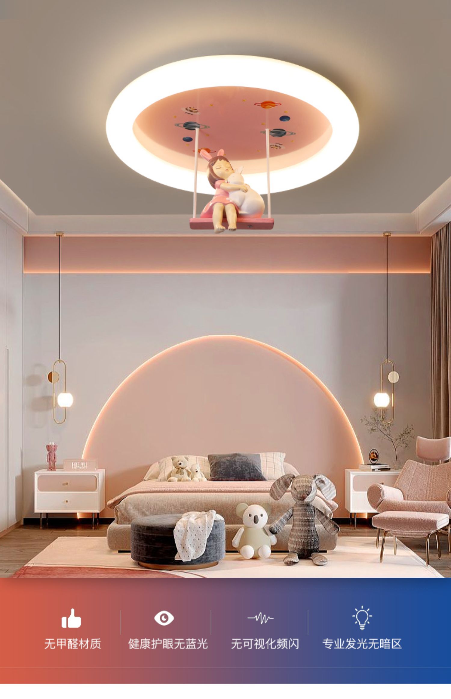 Светодиодный потолочный светильник для детской комнаты, современная простая мультяшная креативная модная лампа для спальни принцессы, защита глаз