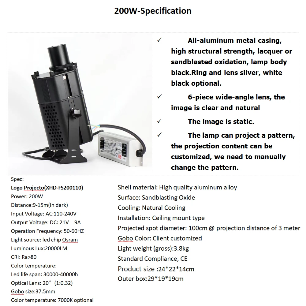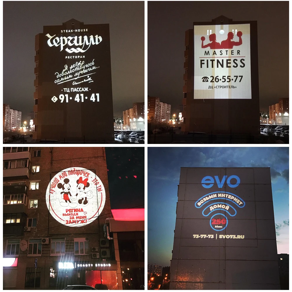 Пользовательский светодиодный HD Gobo Logo Projector Крытый Открытый Ip67 Водонепроницаемый вращающийся рекламный проекционный свет изображения для напольной свадьбы